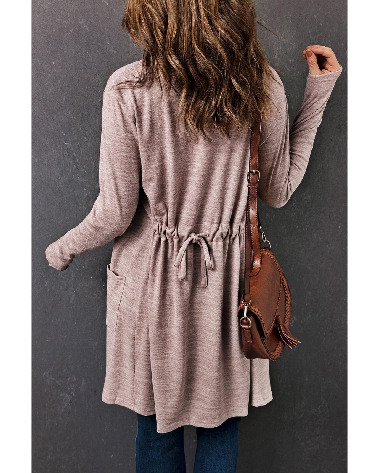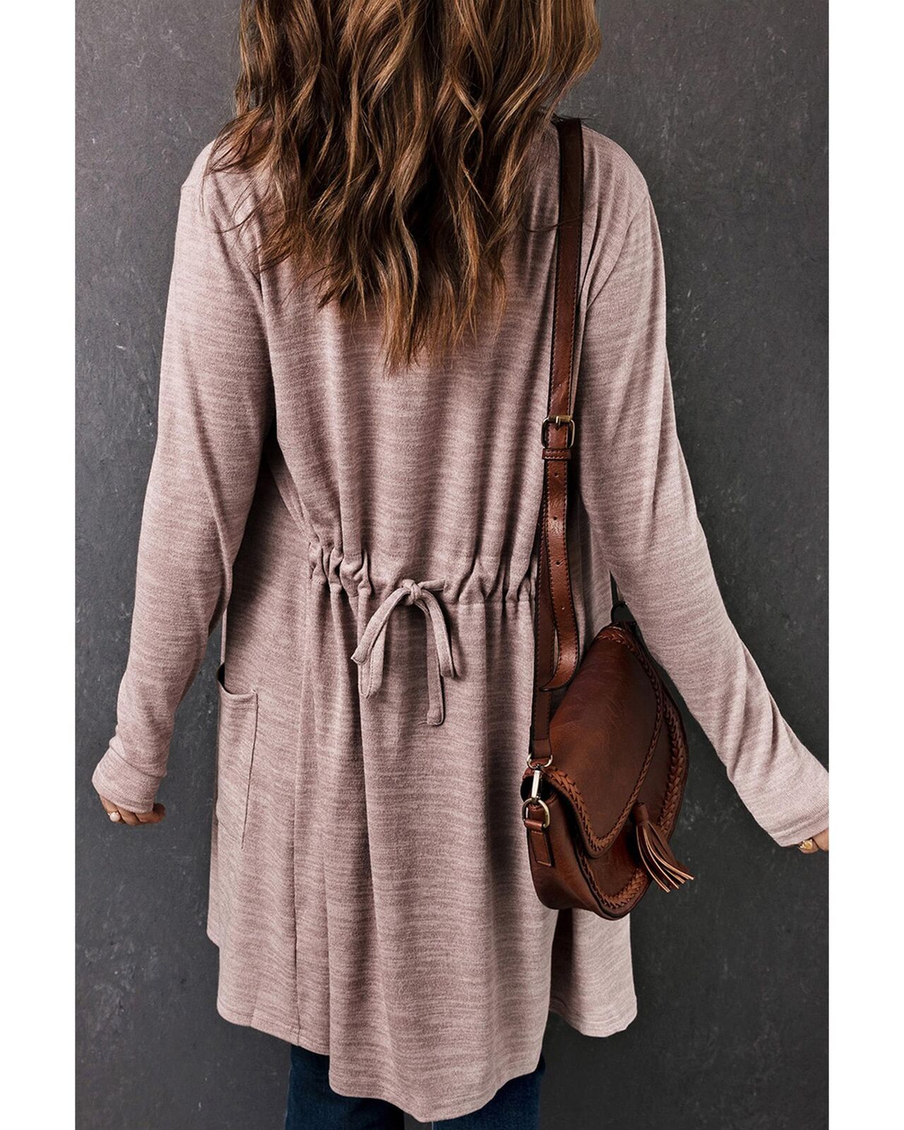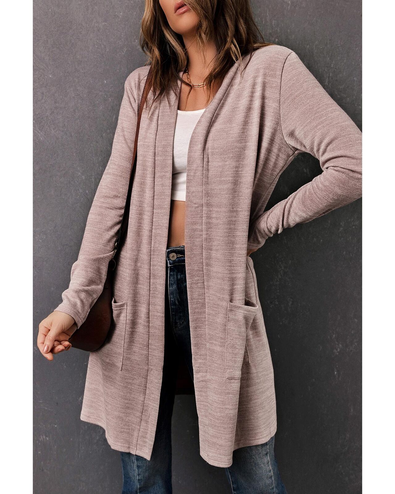 • Pink Tunic Back Open Front Cardigan with Pockets