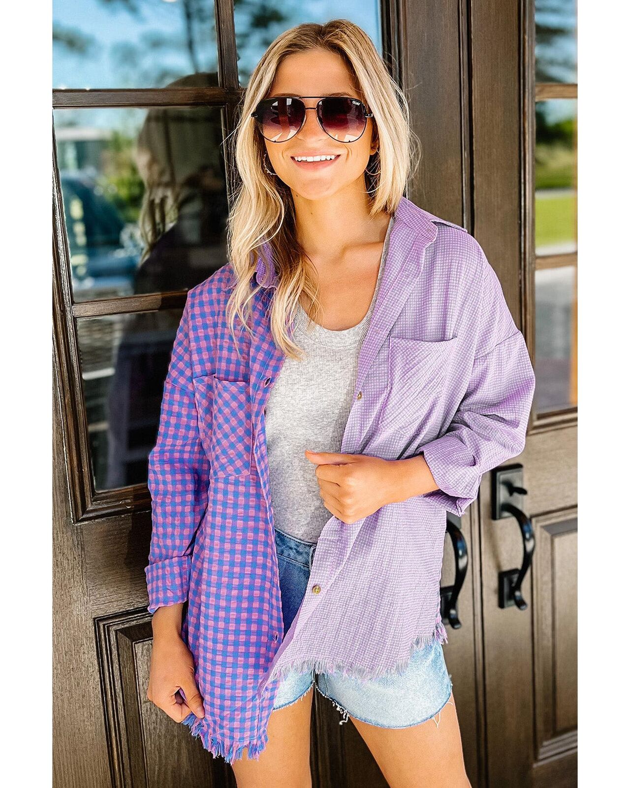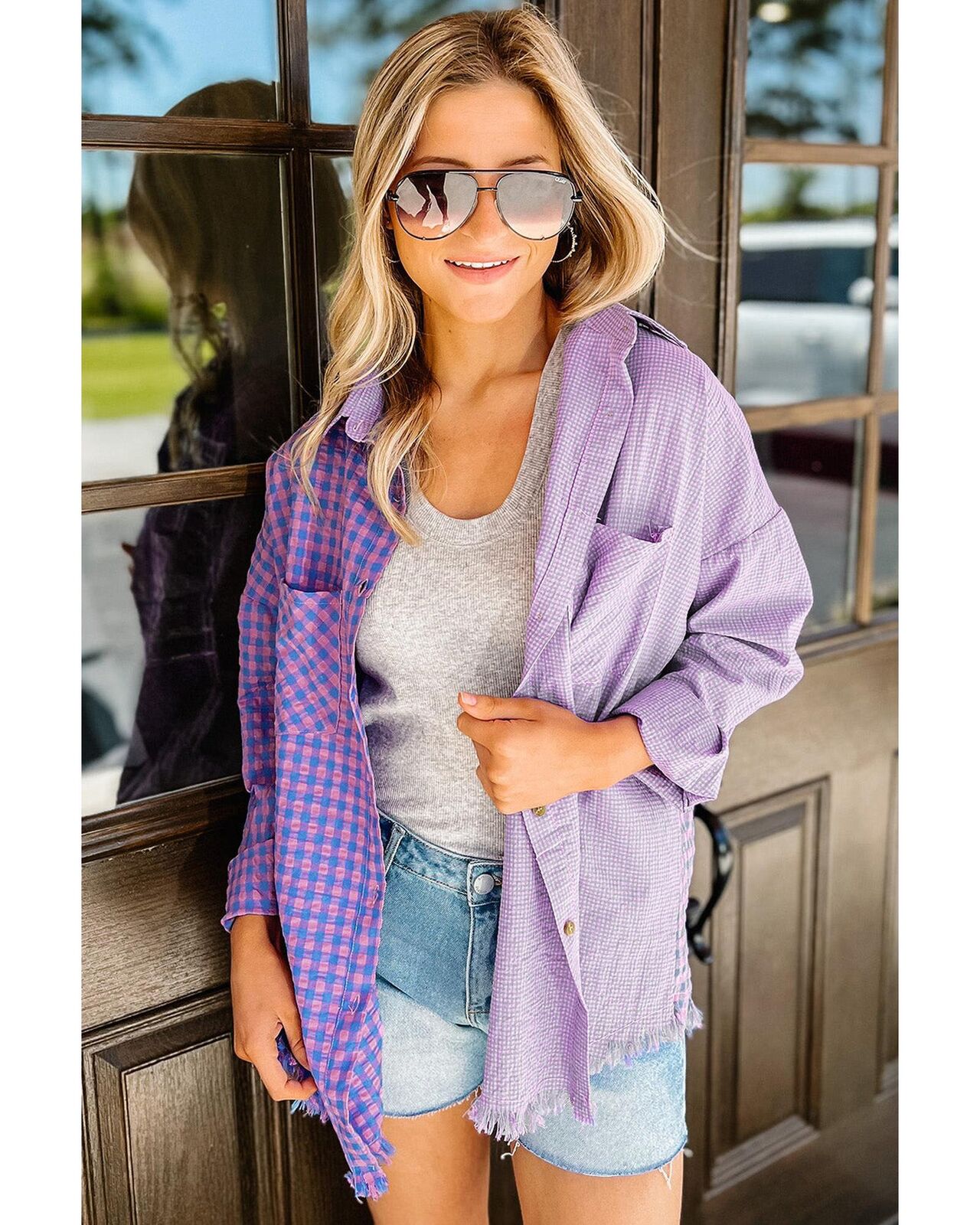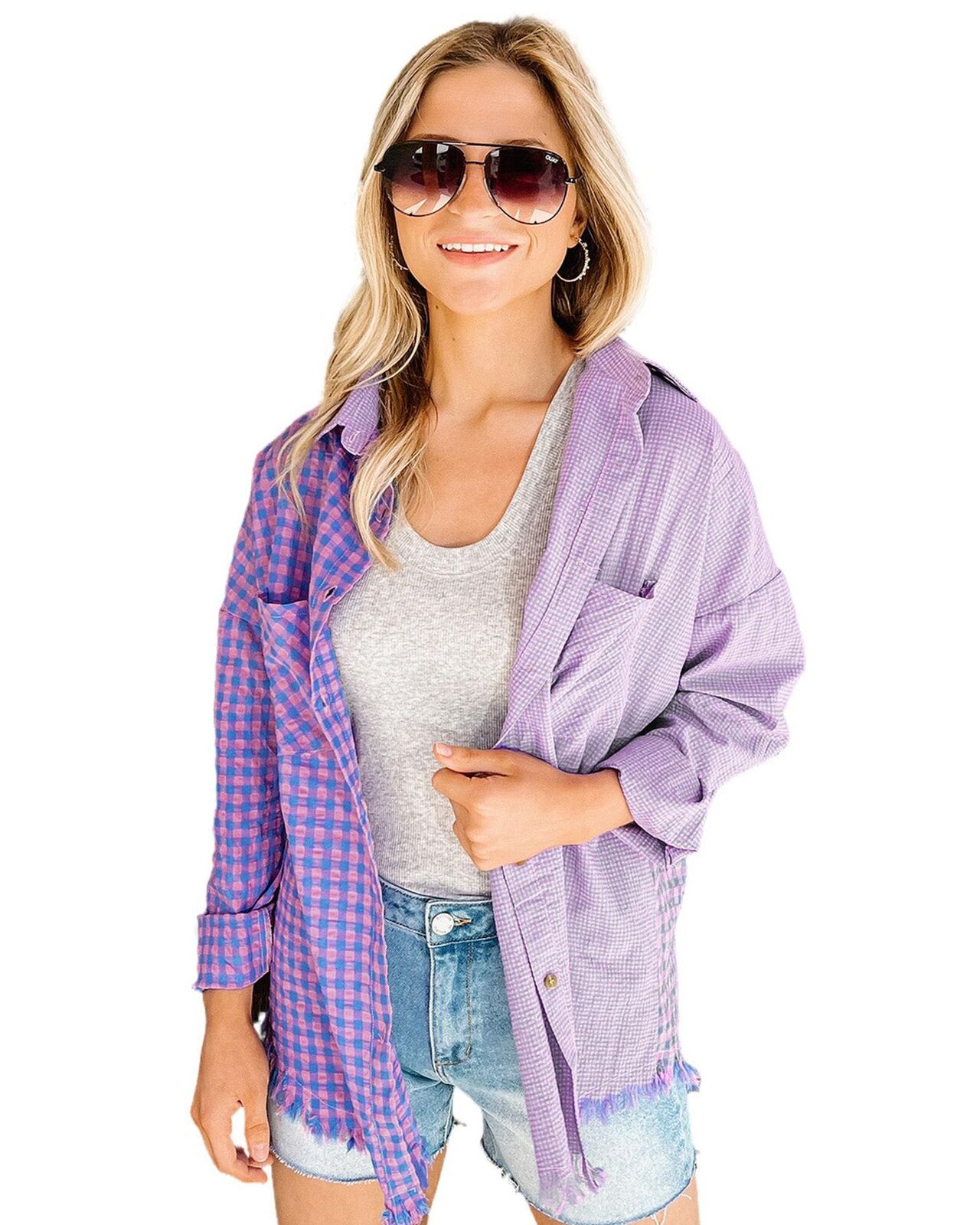 • Stylish and versatile mixed plaid button-down shirt