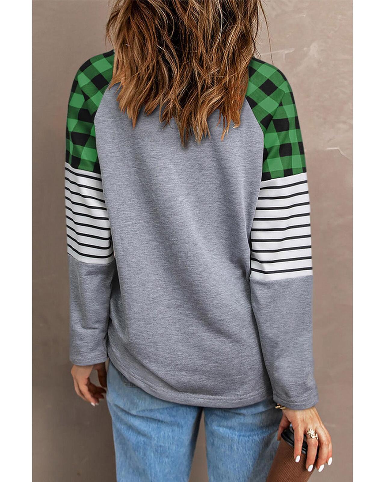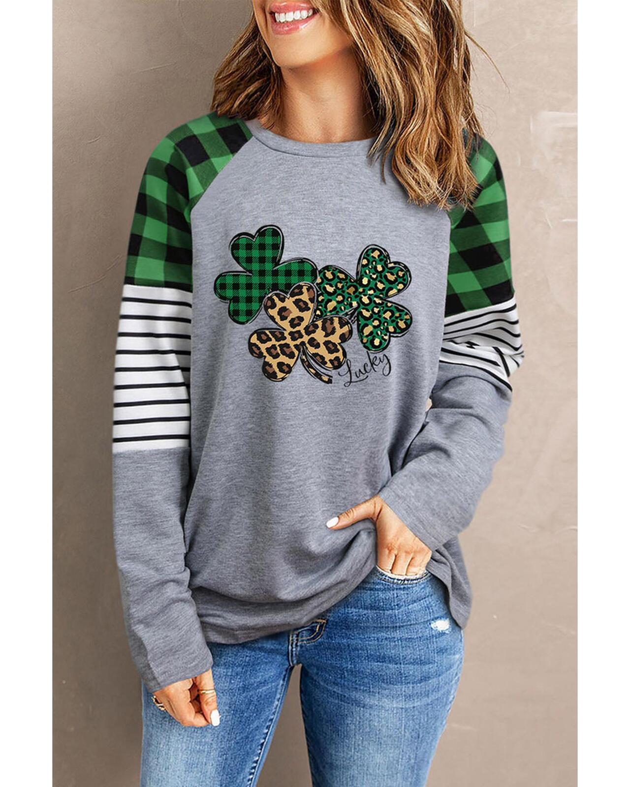 • Stylish and luxurious Lucky Clover Pattern Plaid Striped Sleeve Top