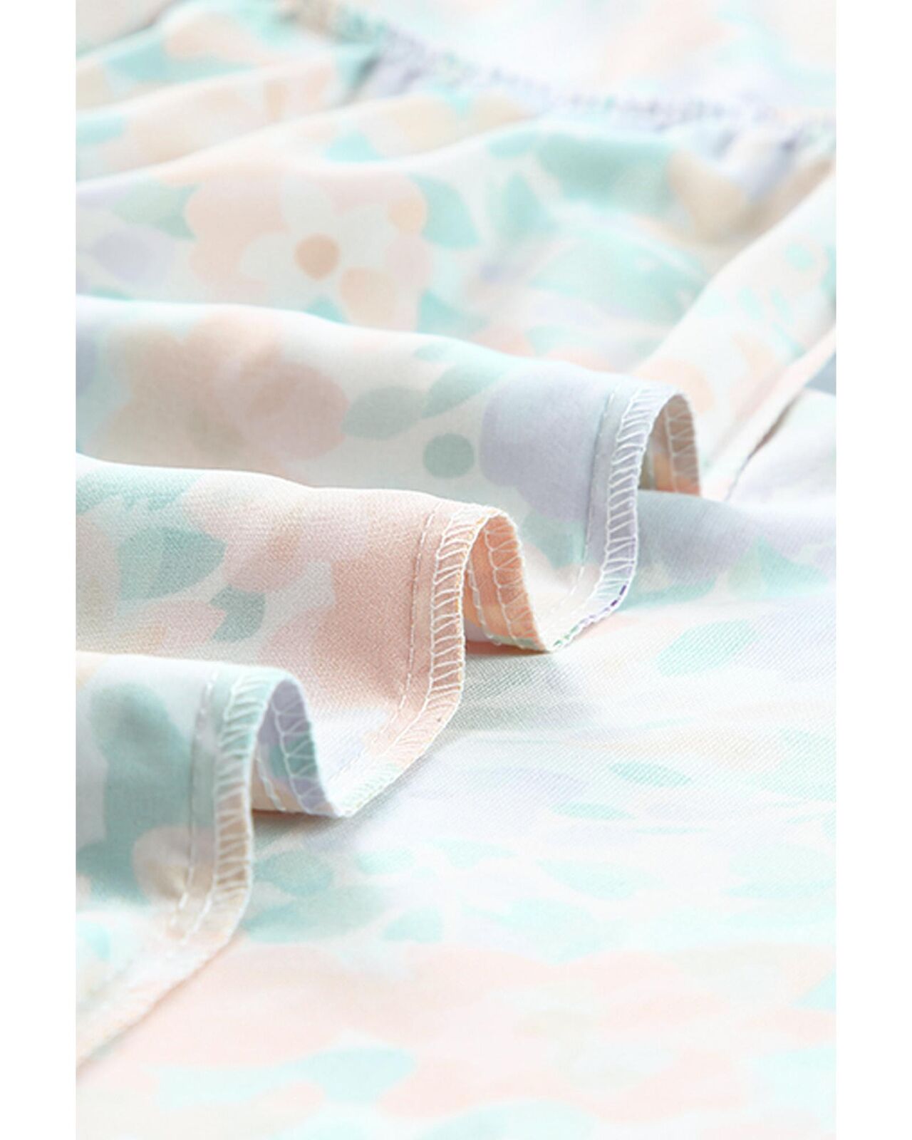 • Floral Print Keyhole Back Short Sleeve Babydoll Blouse