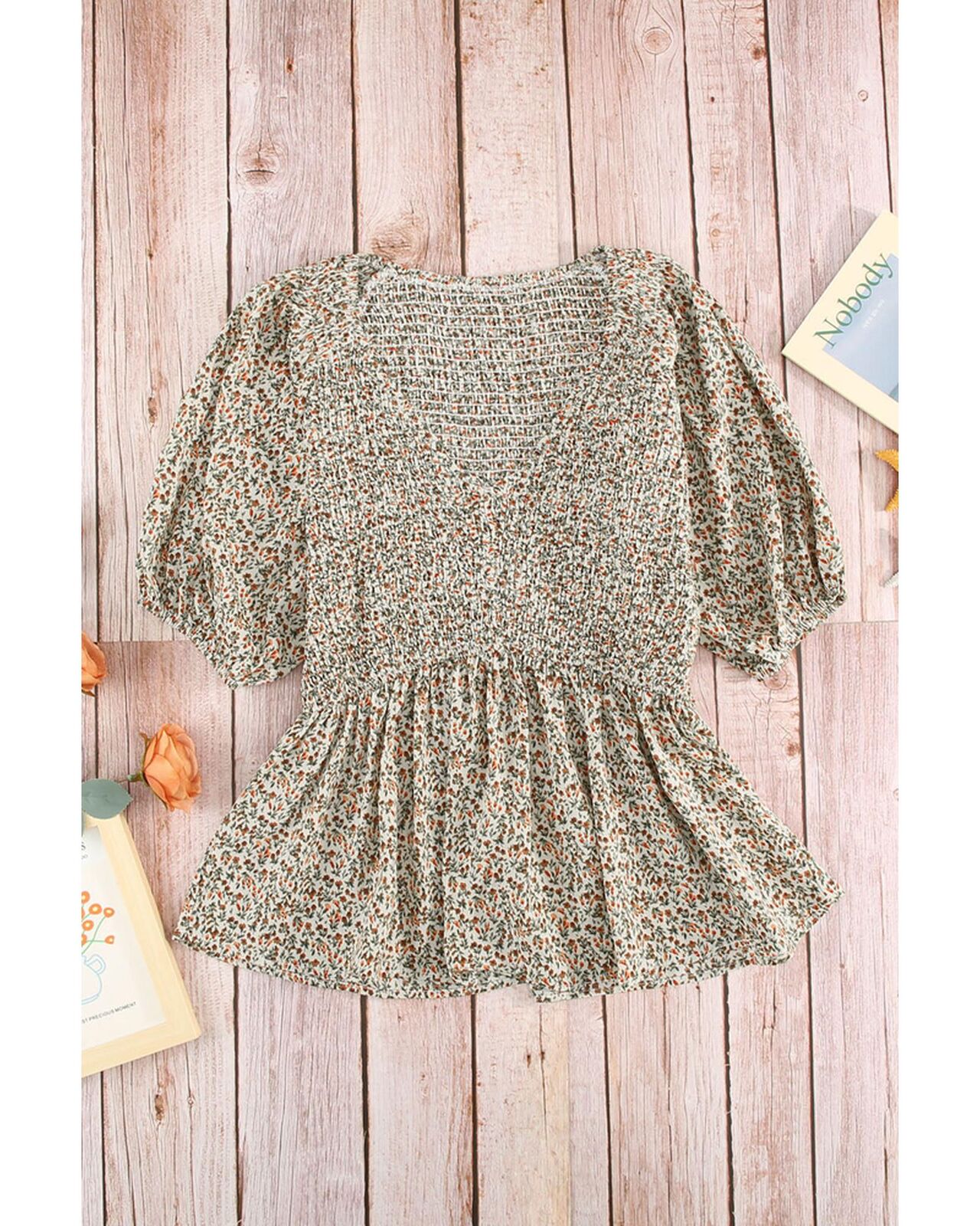 • Stylish and feminine Floral Print Puff Sleeve Smocked Top