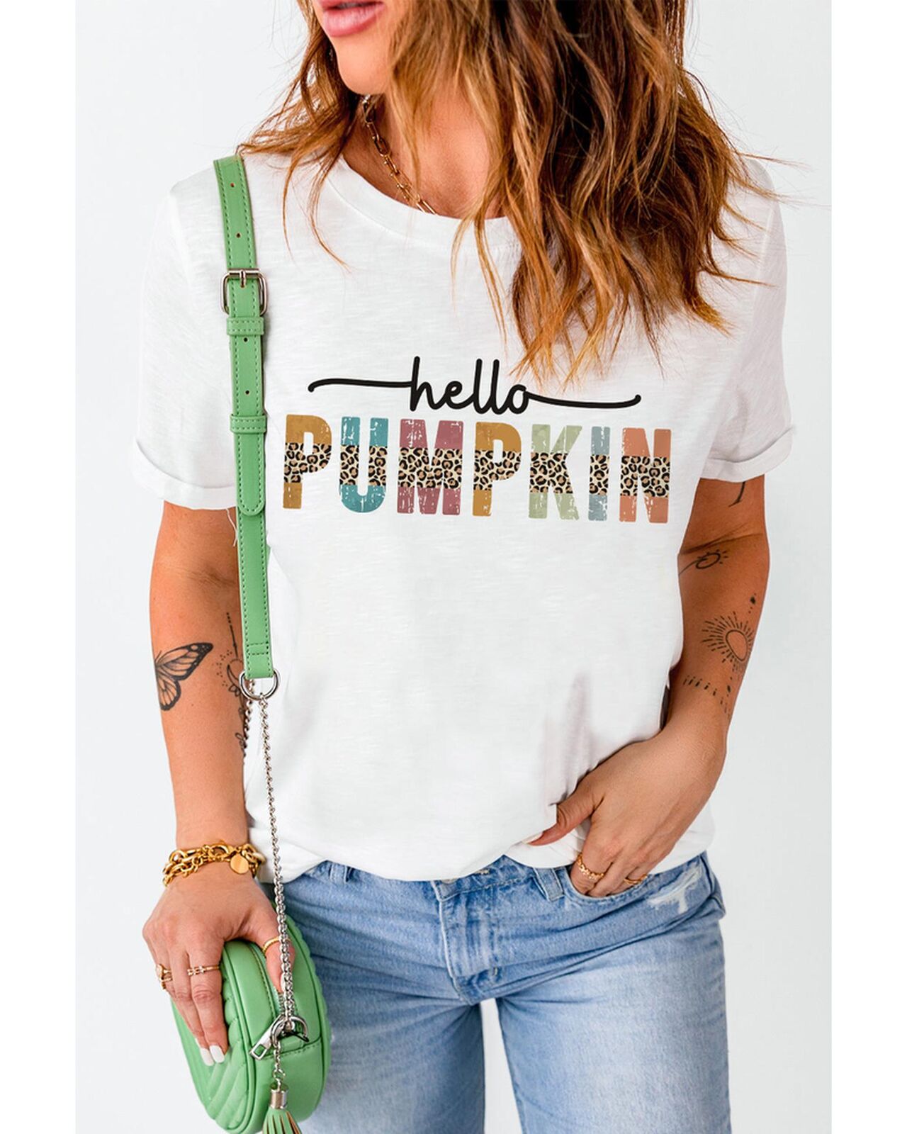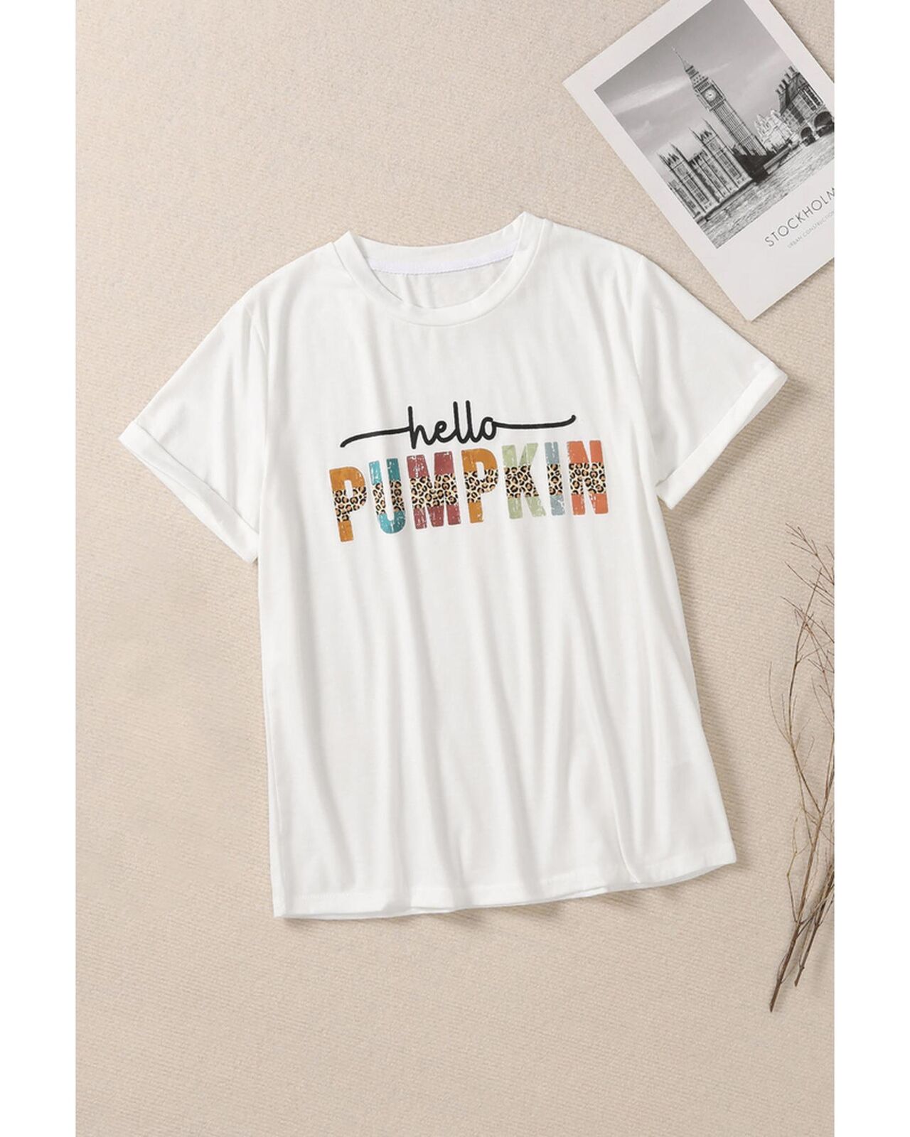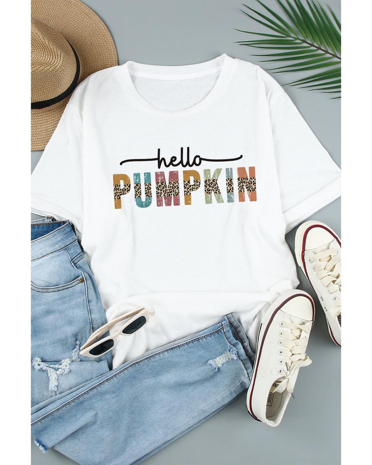 • Colorful Pumpkin Leopard Graphic Casual Tee
