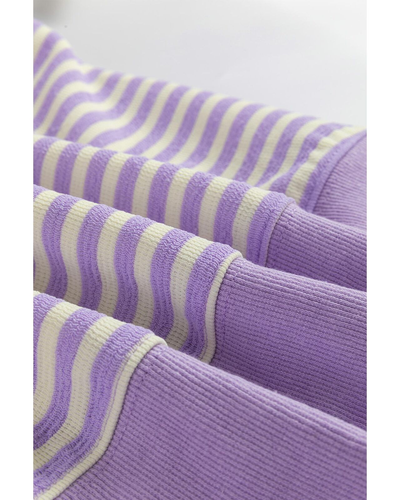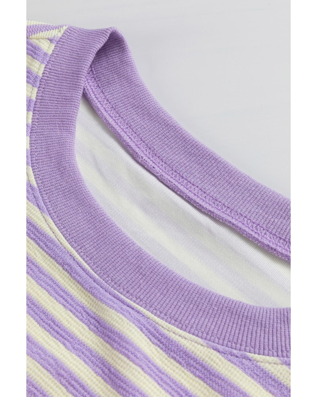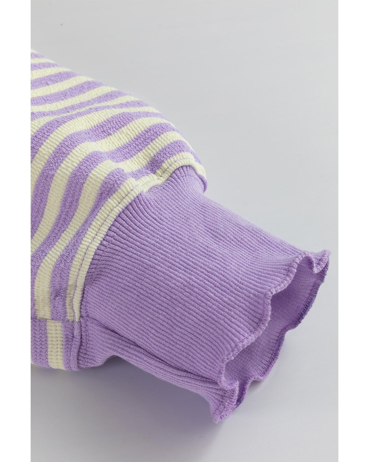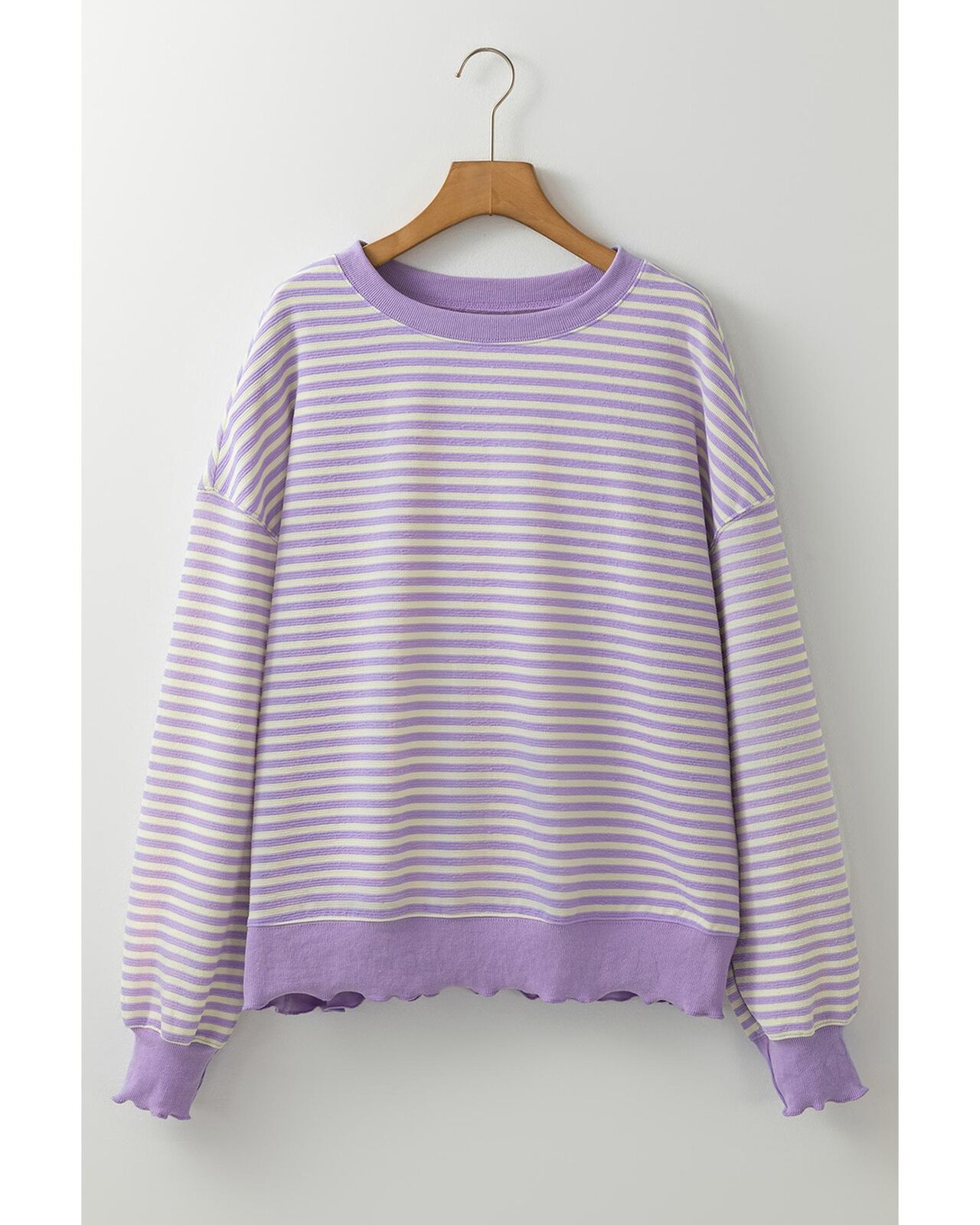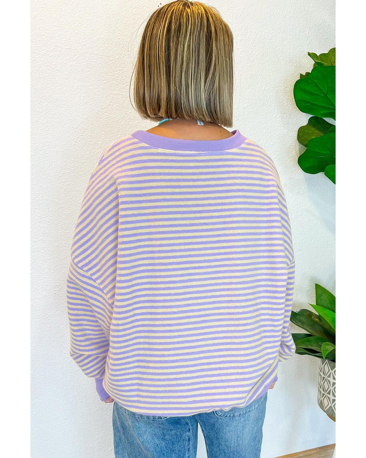 • Purple Stripe Loose Drop Shoulder Long Sleeve Top