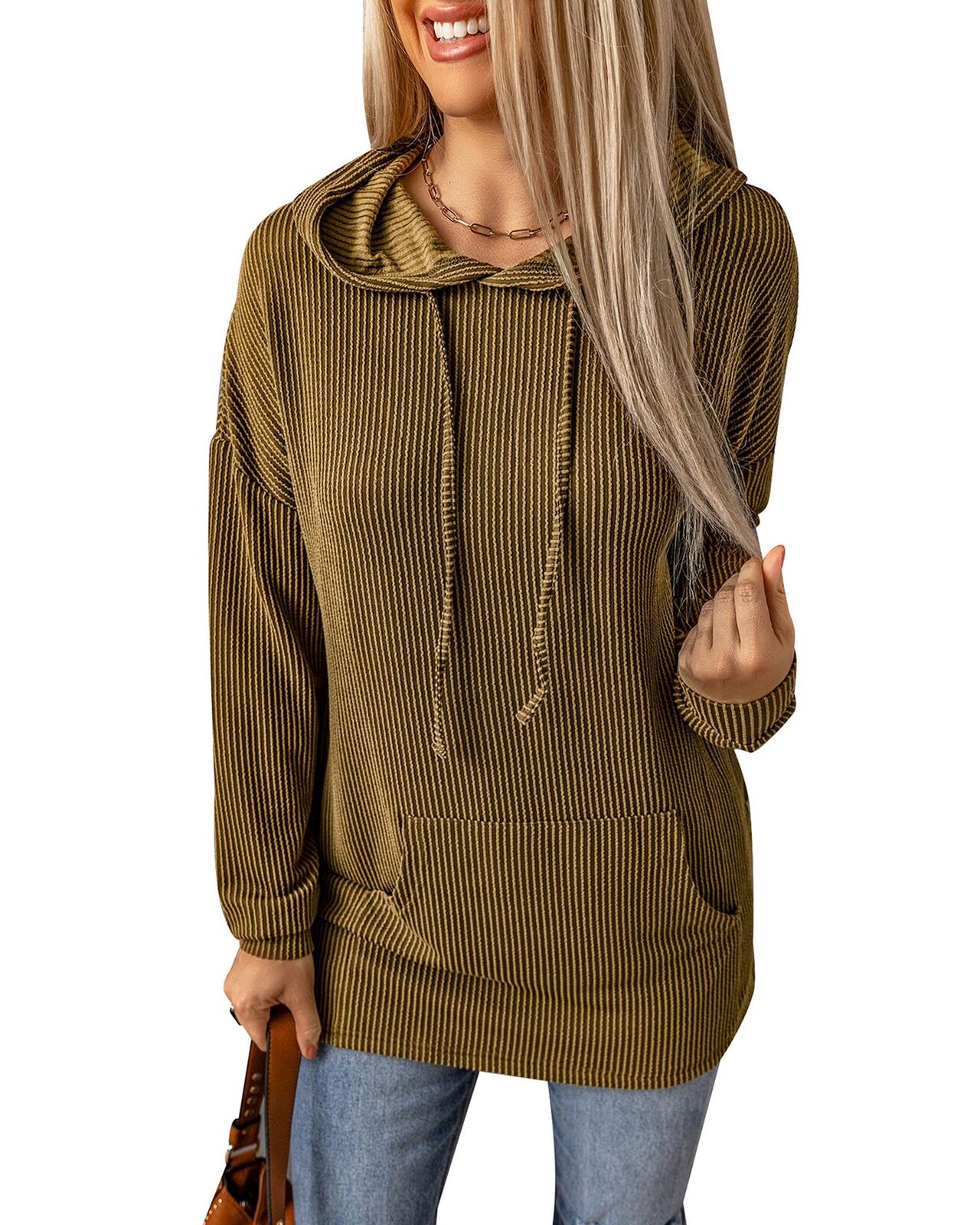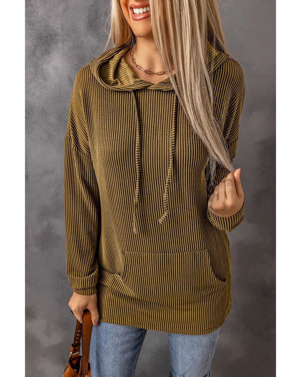 • Ribbed drawstring pullover hoodie