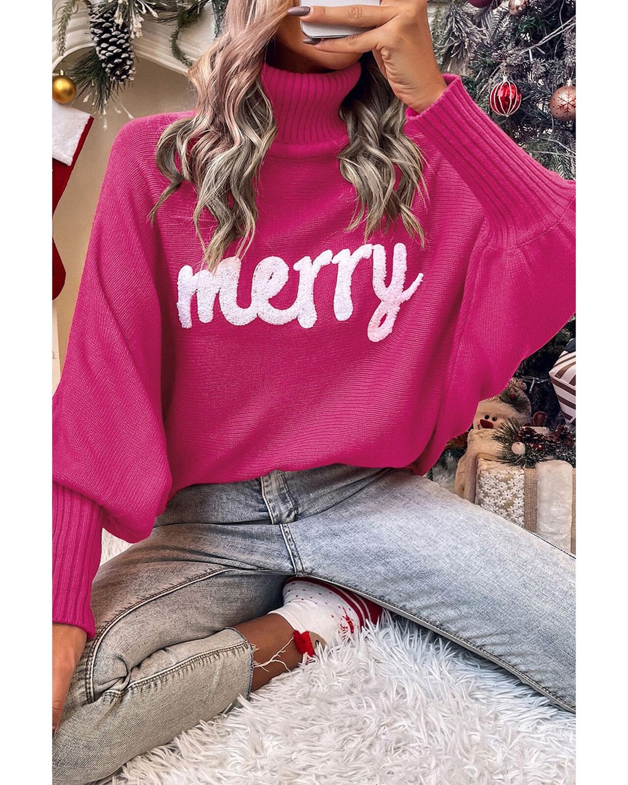 • Turtleneck sweater with letter graphic for a festive Christmas touch