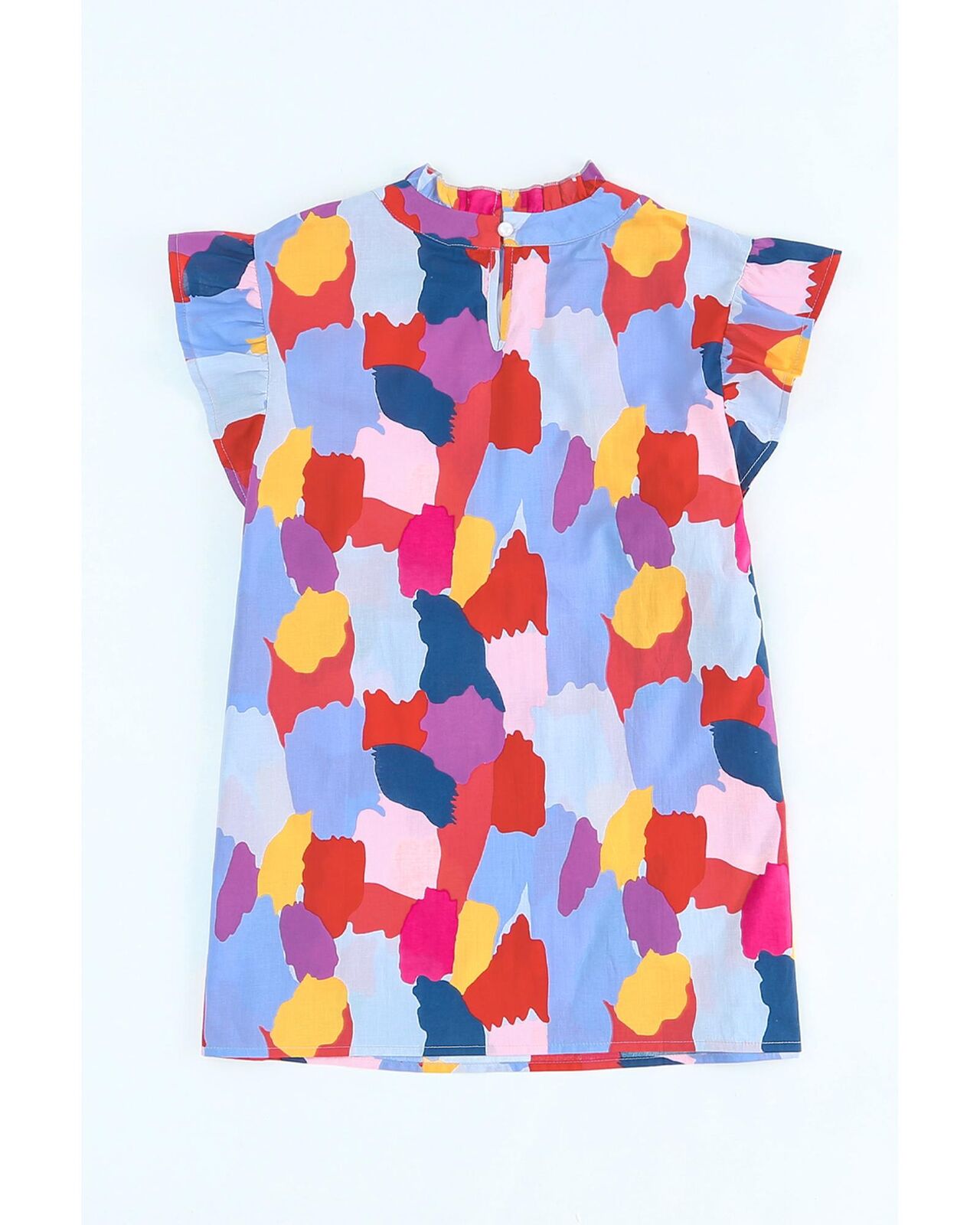 • Stylish and feminine Ruffle Cap Sleeve Frill Mock Neck Printed Top
