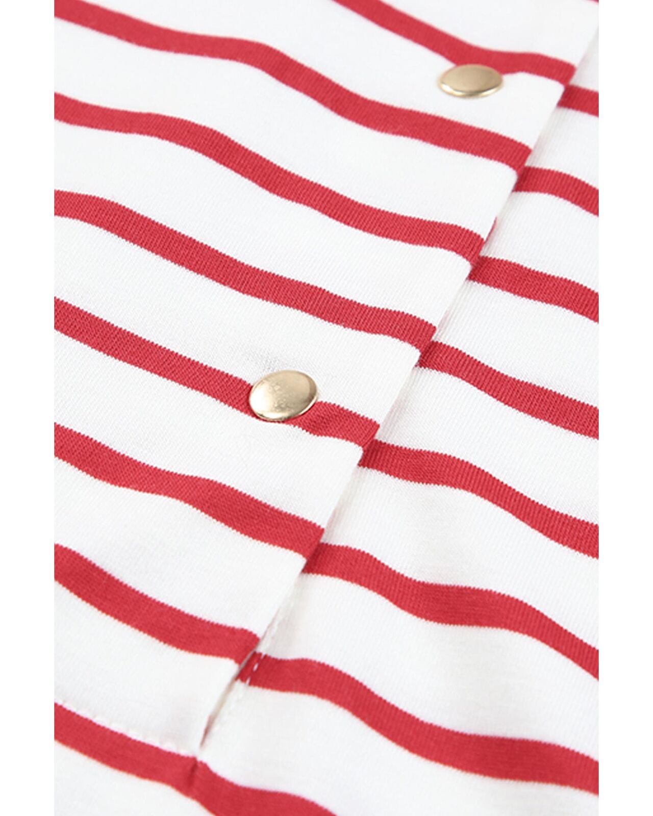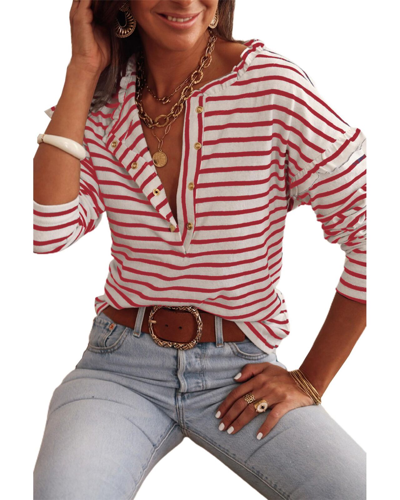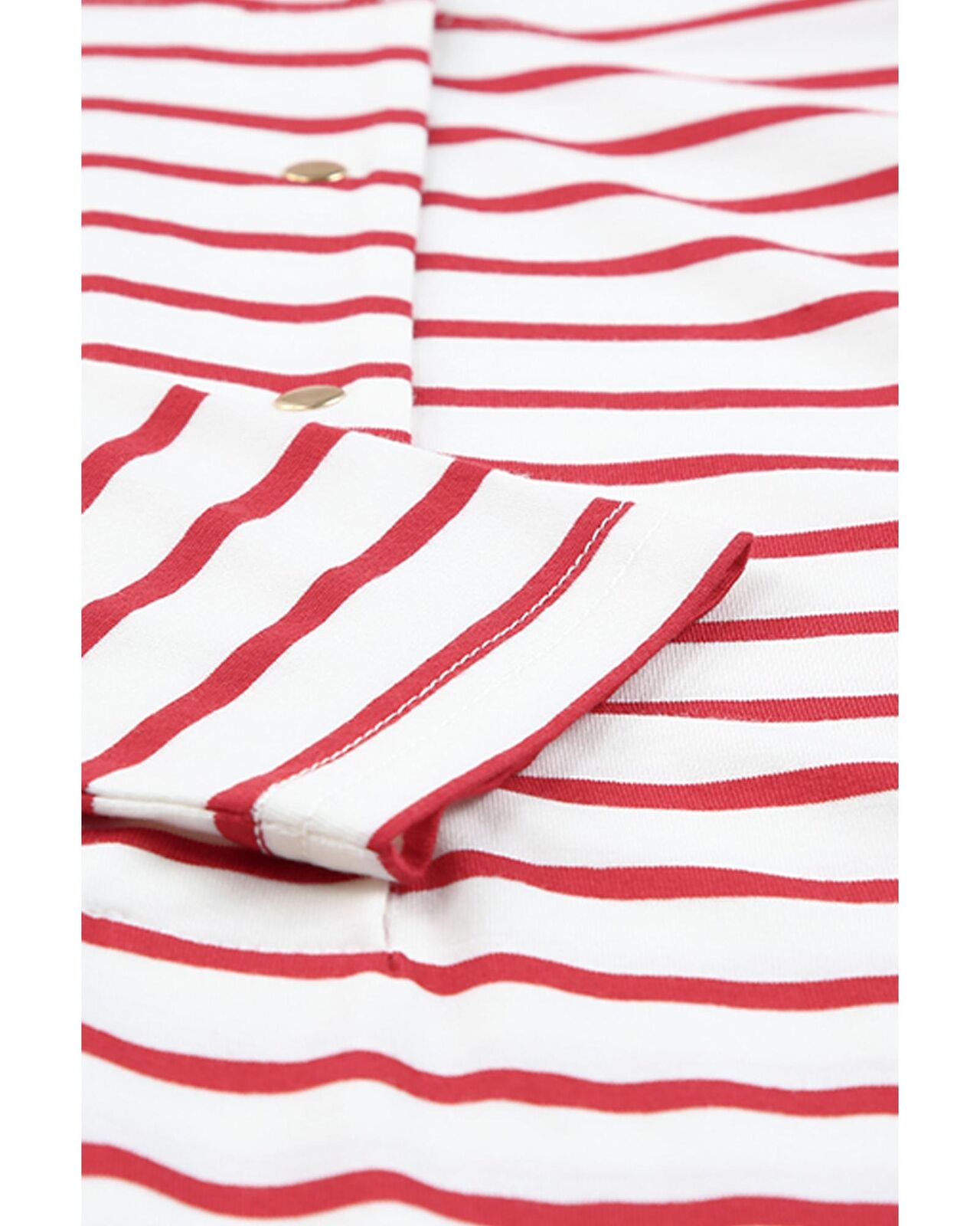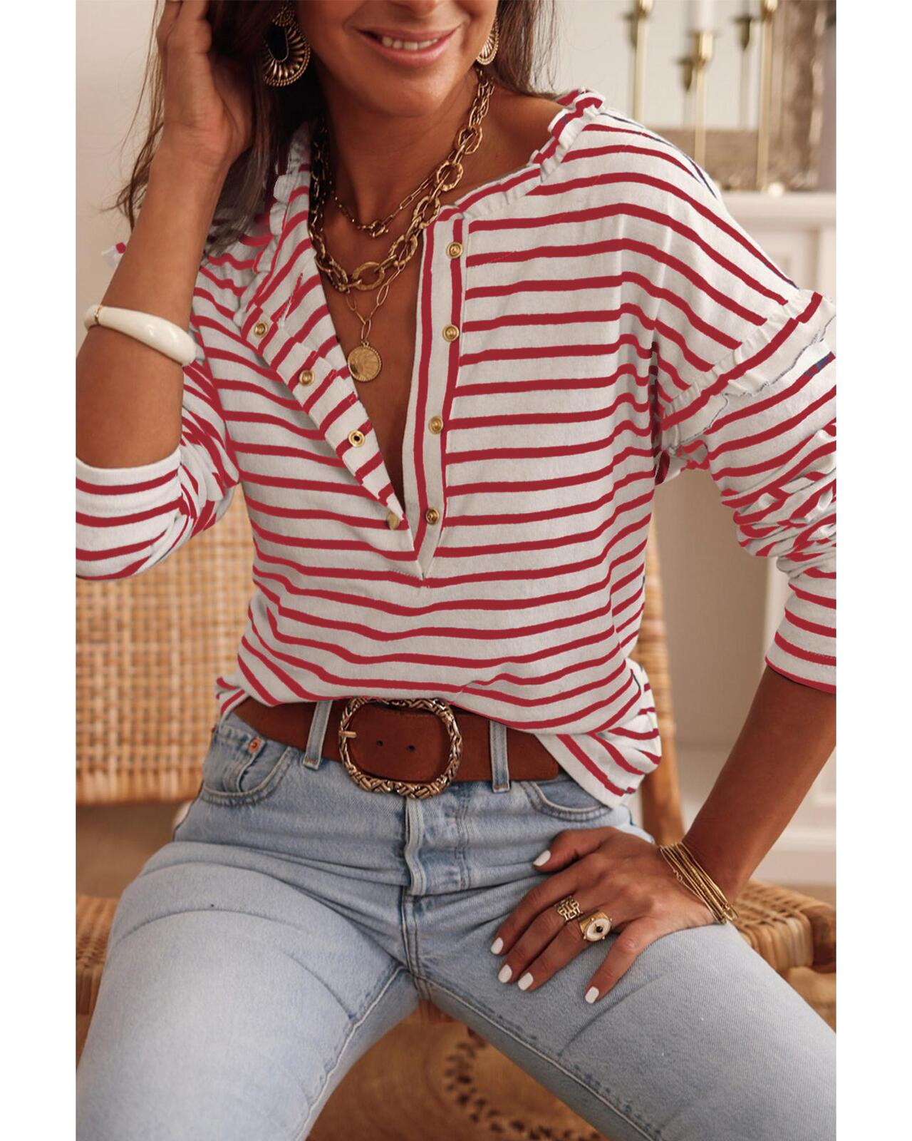• Striped Print Ruffled Buttoned Long Sleeve Top
