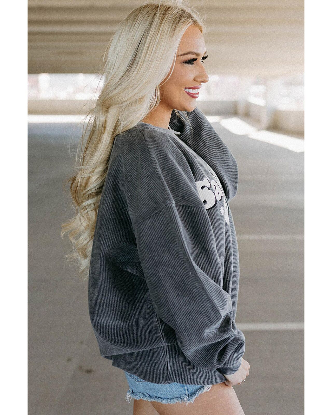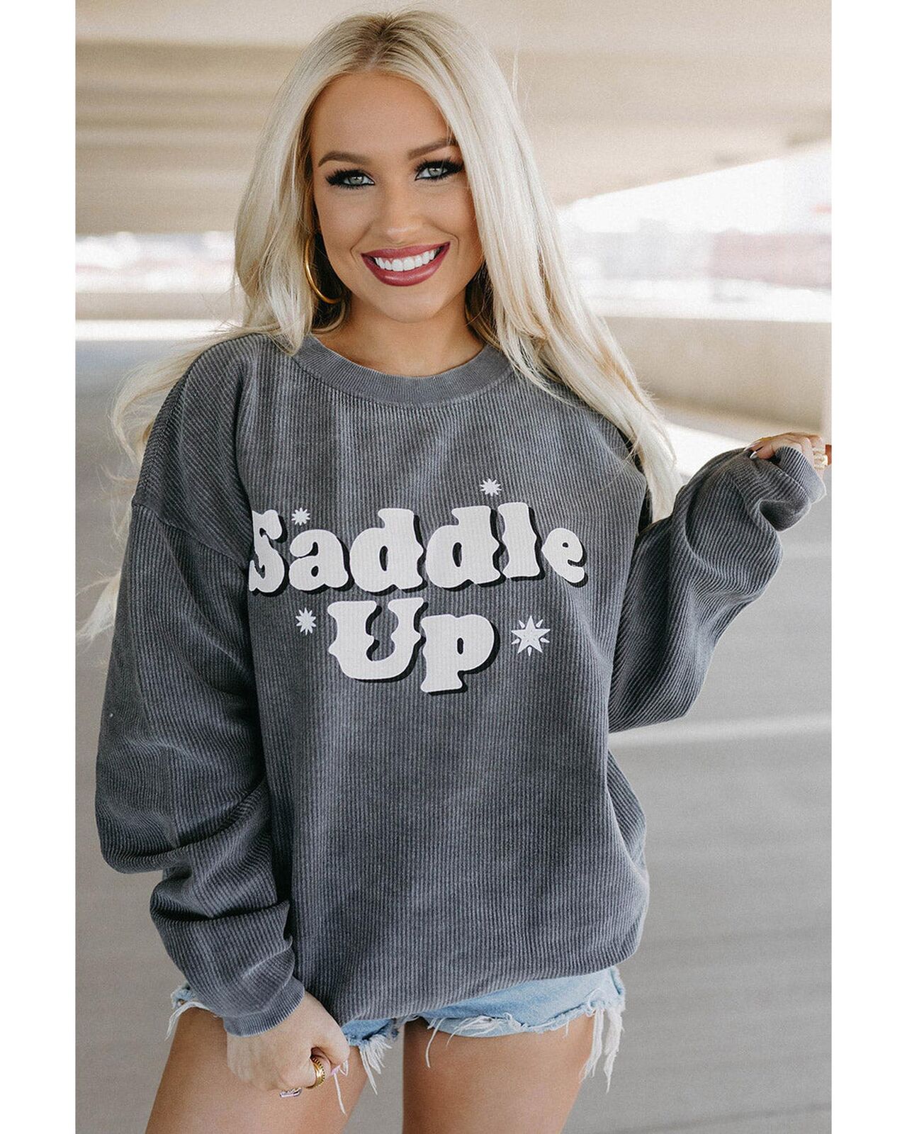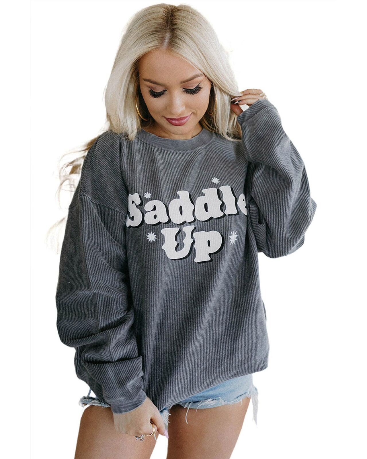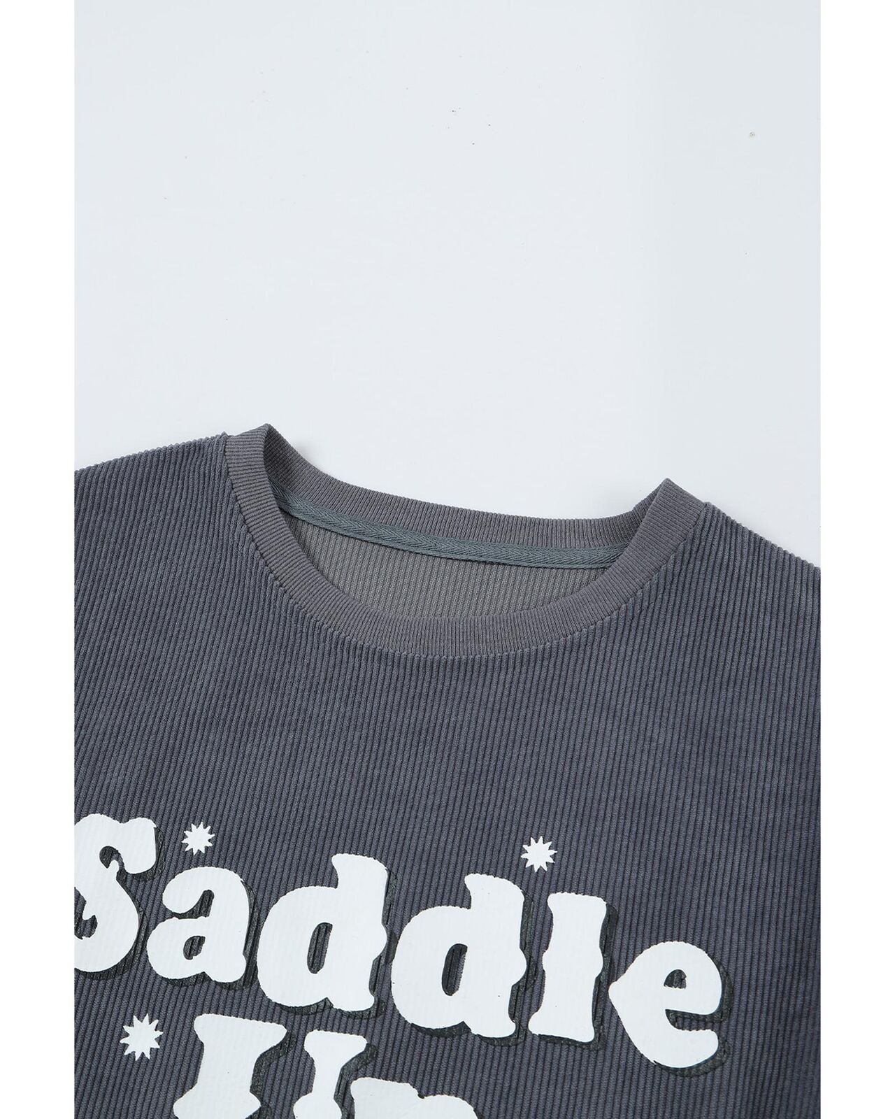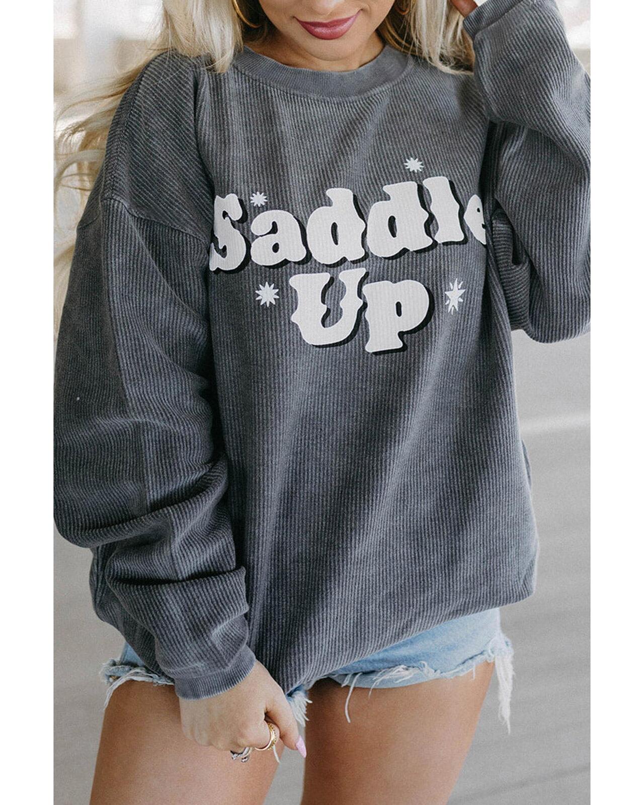 • Stylish and comfortable Gray Saddle Up Corded Graphic Sweatshirt