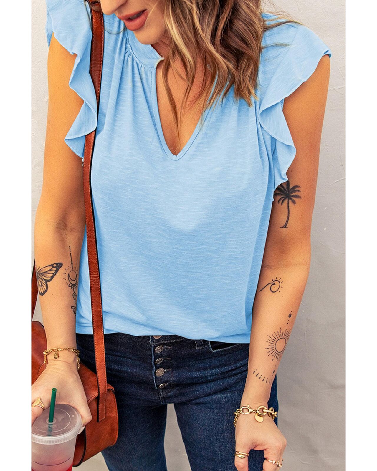 • Versatile and stylish Casual Solid V Neck Butterfly Sleeve Tee