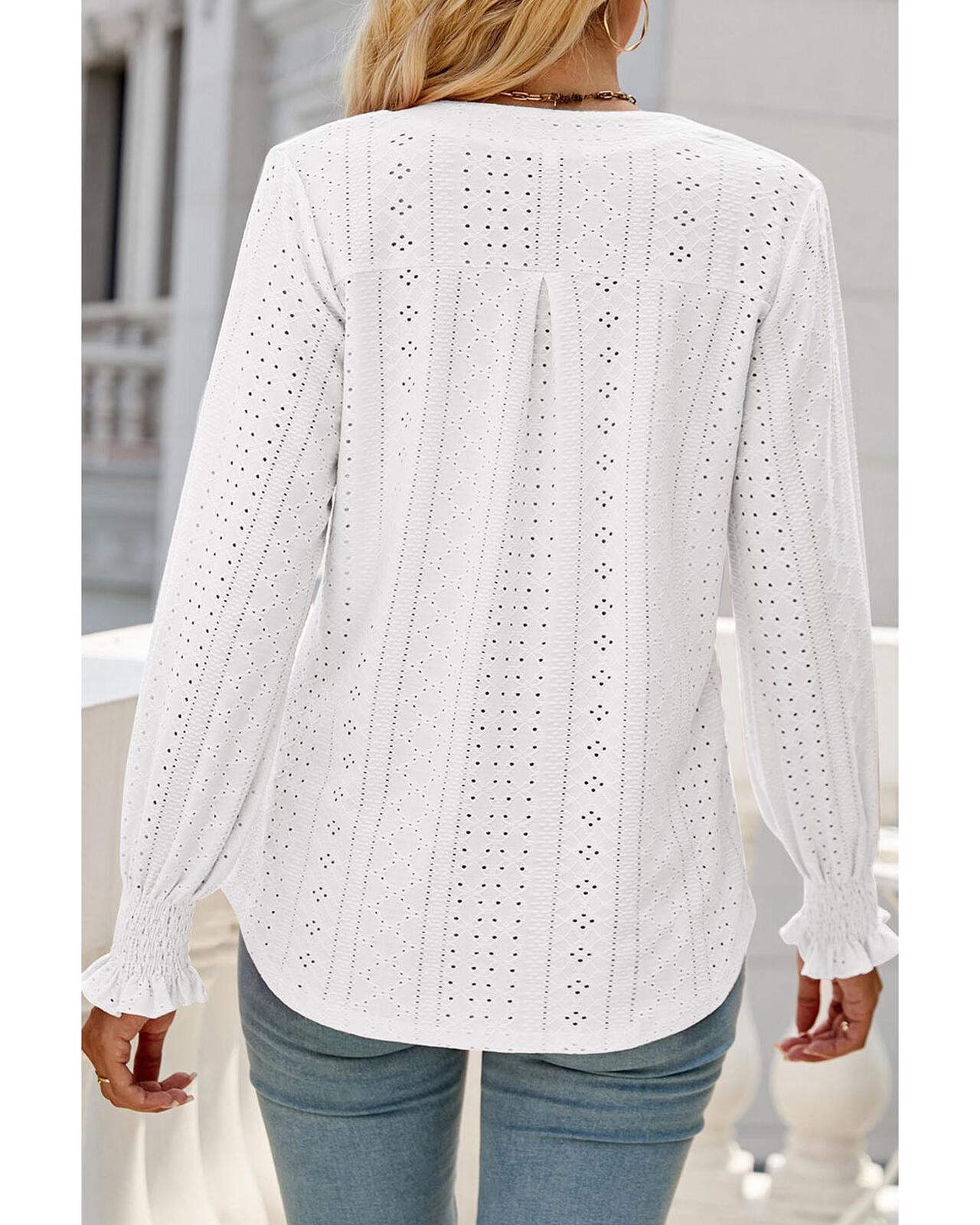 • Versatile and stylish White Split Neck Textured Loose Blouse