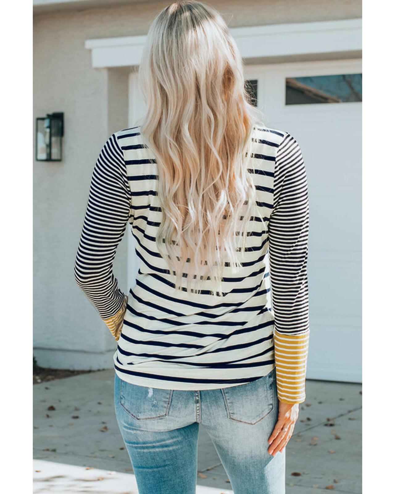 • Long sleeve stripe button henley top