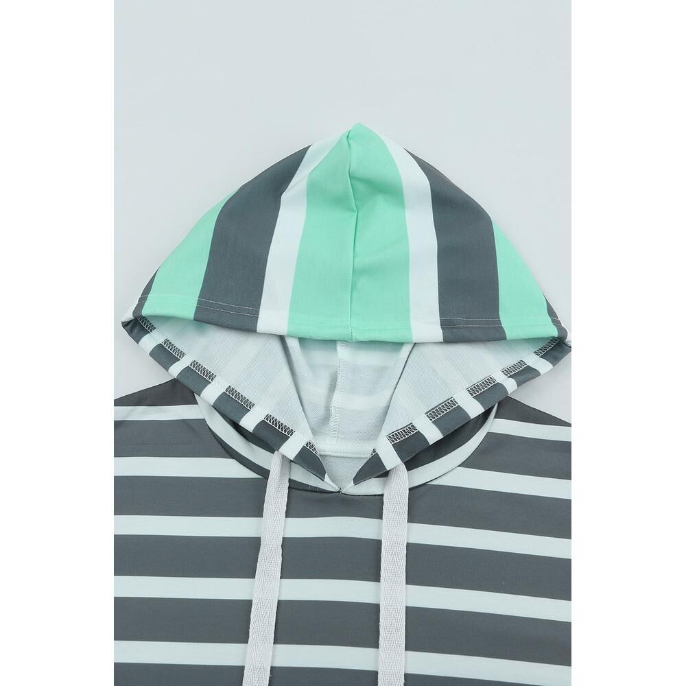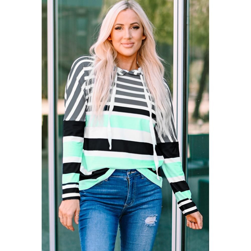• Style: Striped Drawstring Long Sleeve Hoodie
