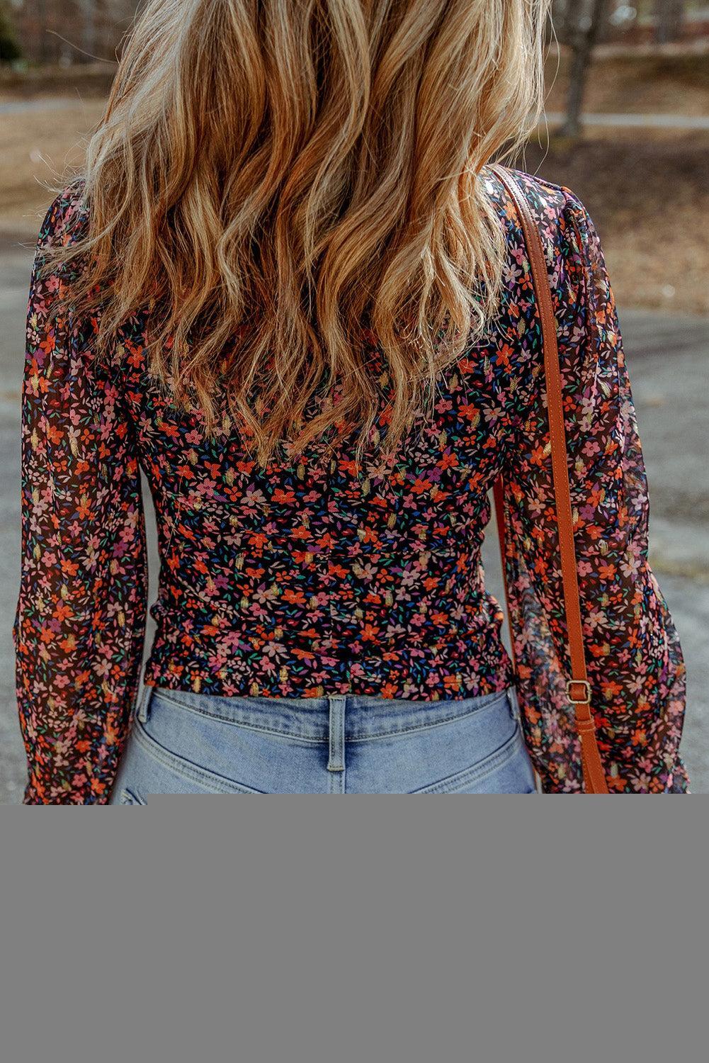 • Stylish and feminine V Neck Bubble Sleeve Floral Blouse