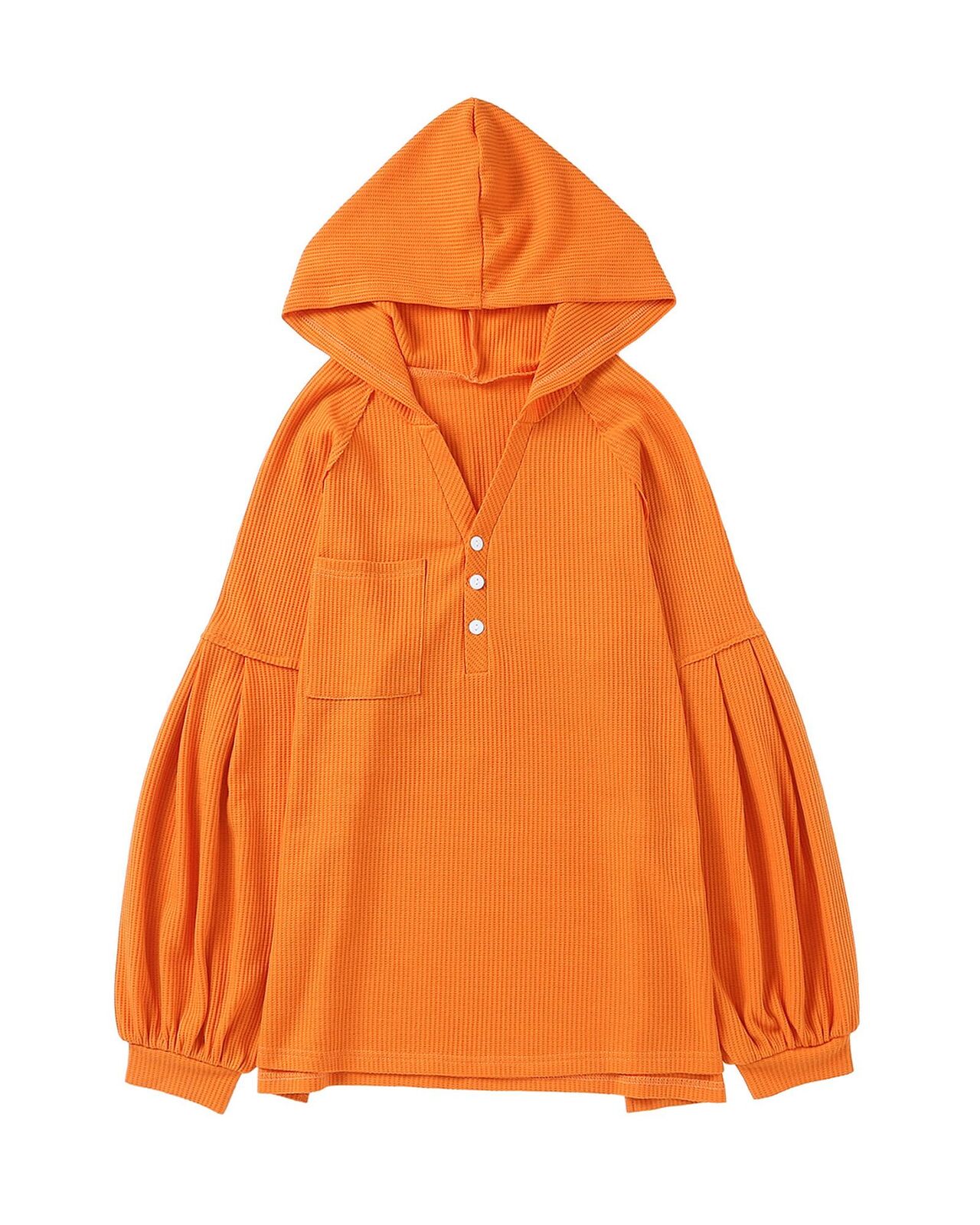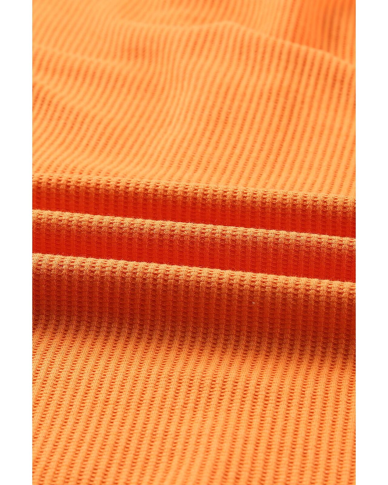 • Buttoned V Neck Drop Shoulder Waffle Knit Top
