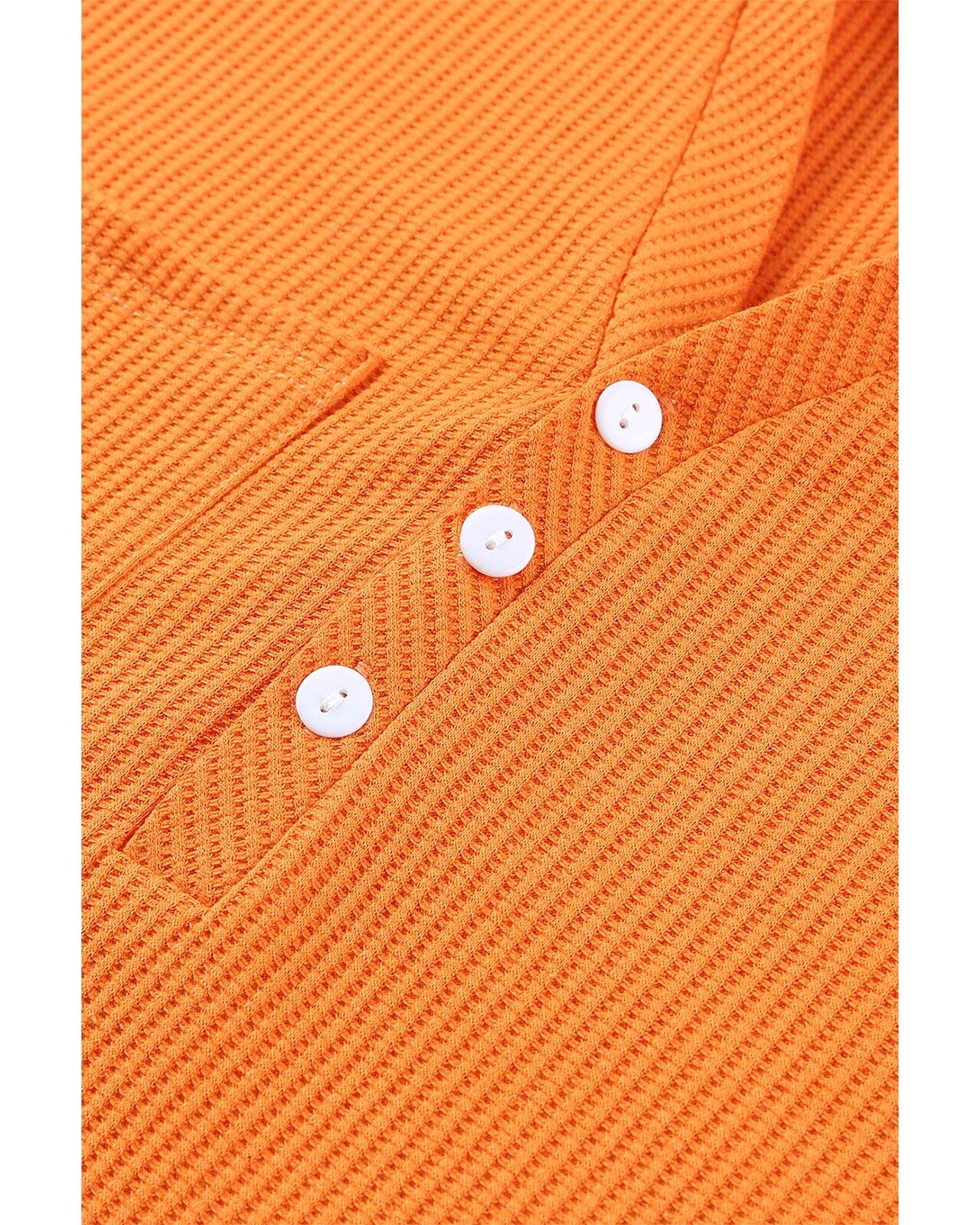 • Buttoned V Neck Drop Shoulder Waffle Knit Top