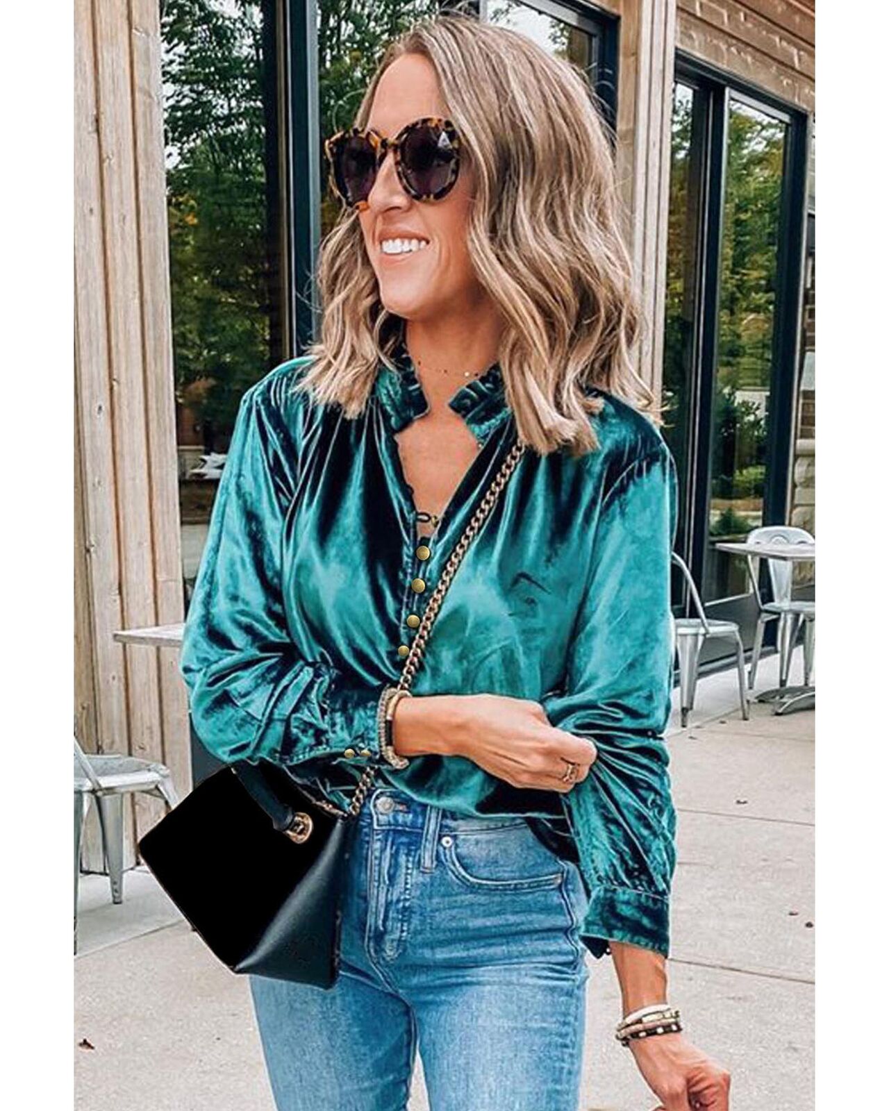 • Stylish frilled neck design