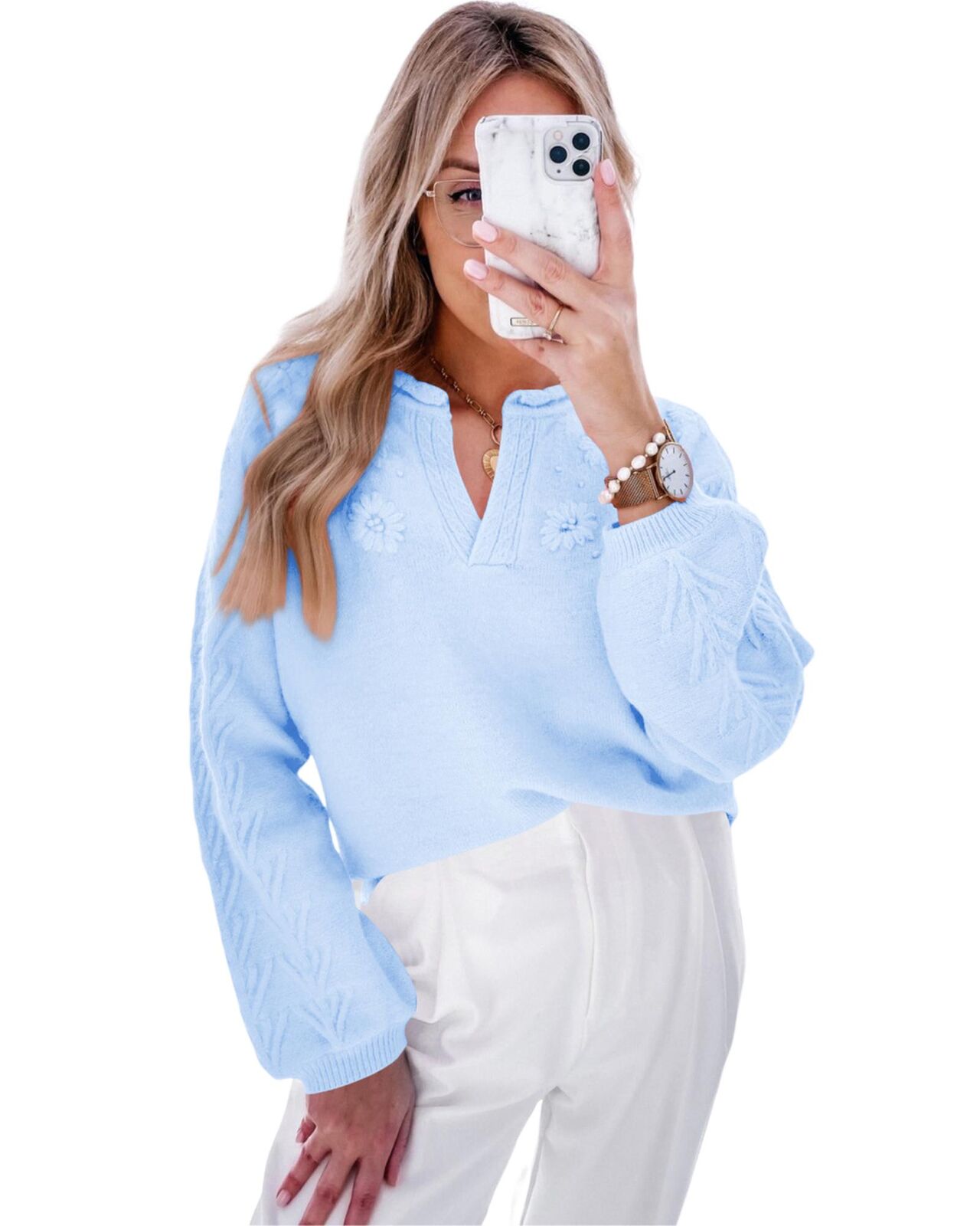 • Puff sleeve sweater for a feminine touch