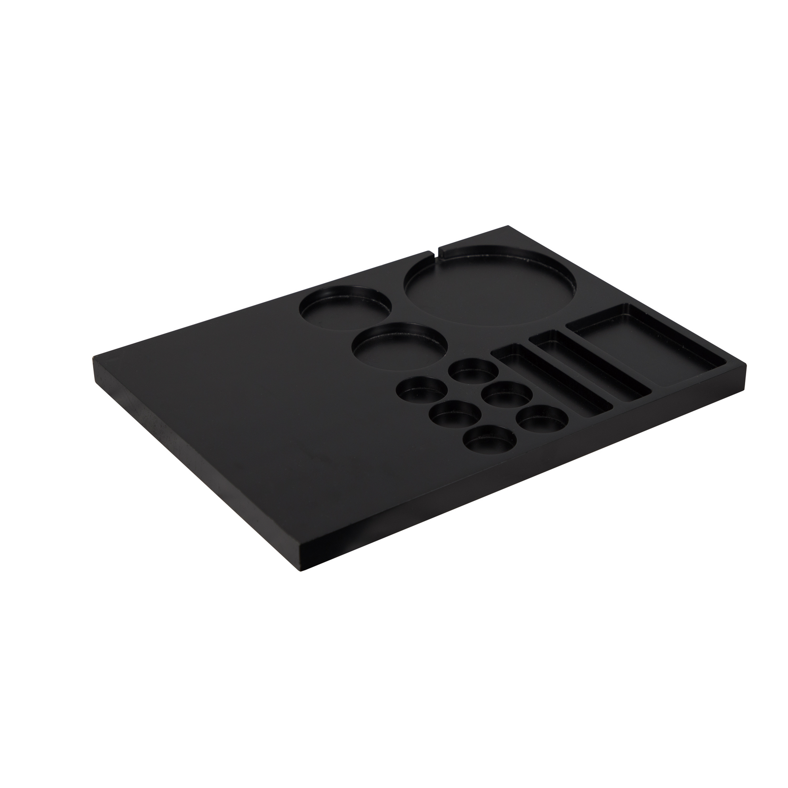 • Storage for Sachets, Spoons, Bottles, and Mugs: Features indentations for storing sachets, spoons, 2 bottles of water, and 2 mugs.