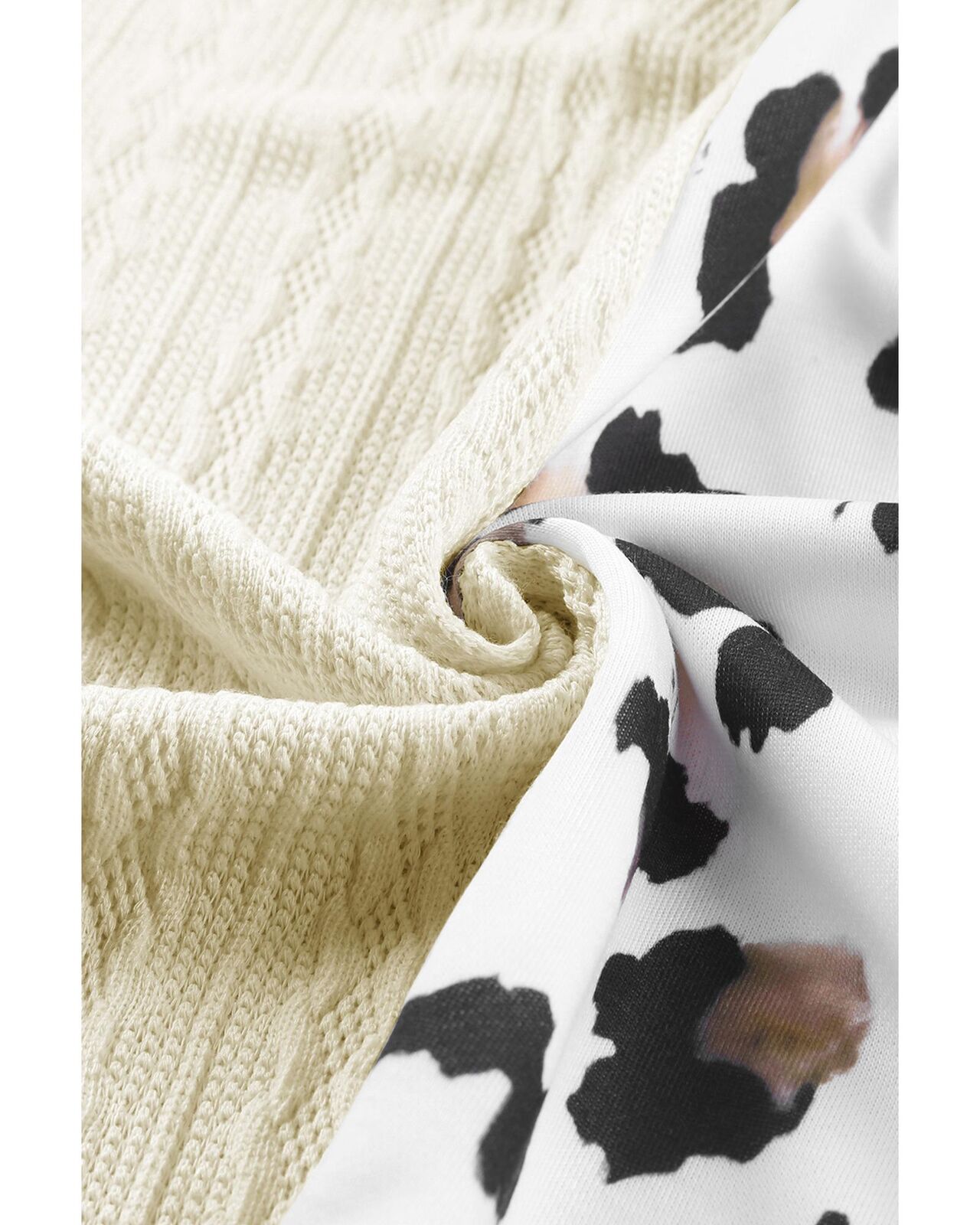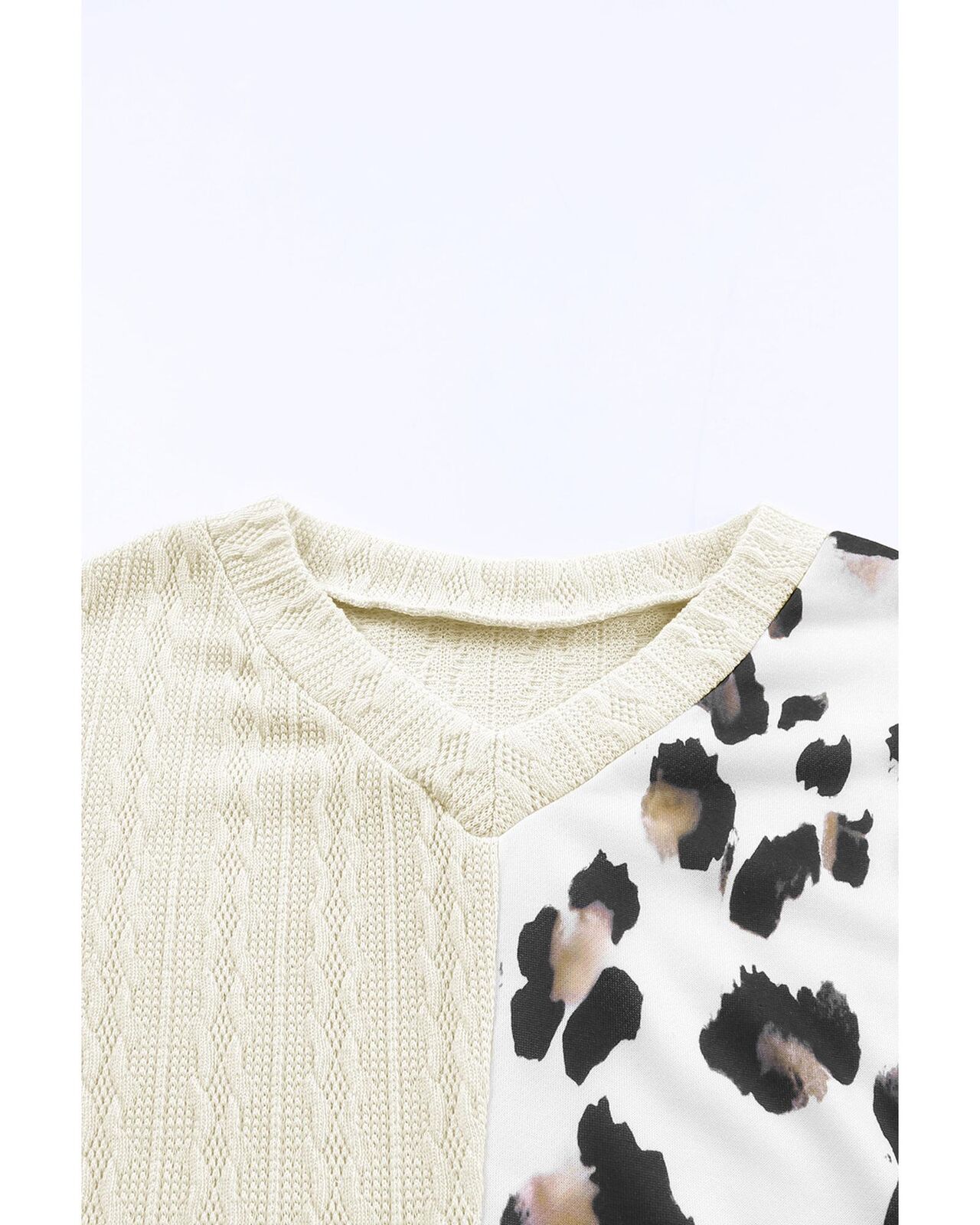 • Luxurious and stylish Beige Asymmetric Leopard Patchwork Wide Sleeve V Neck Sweater
