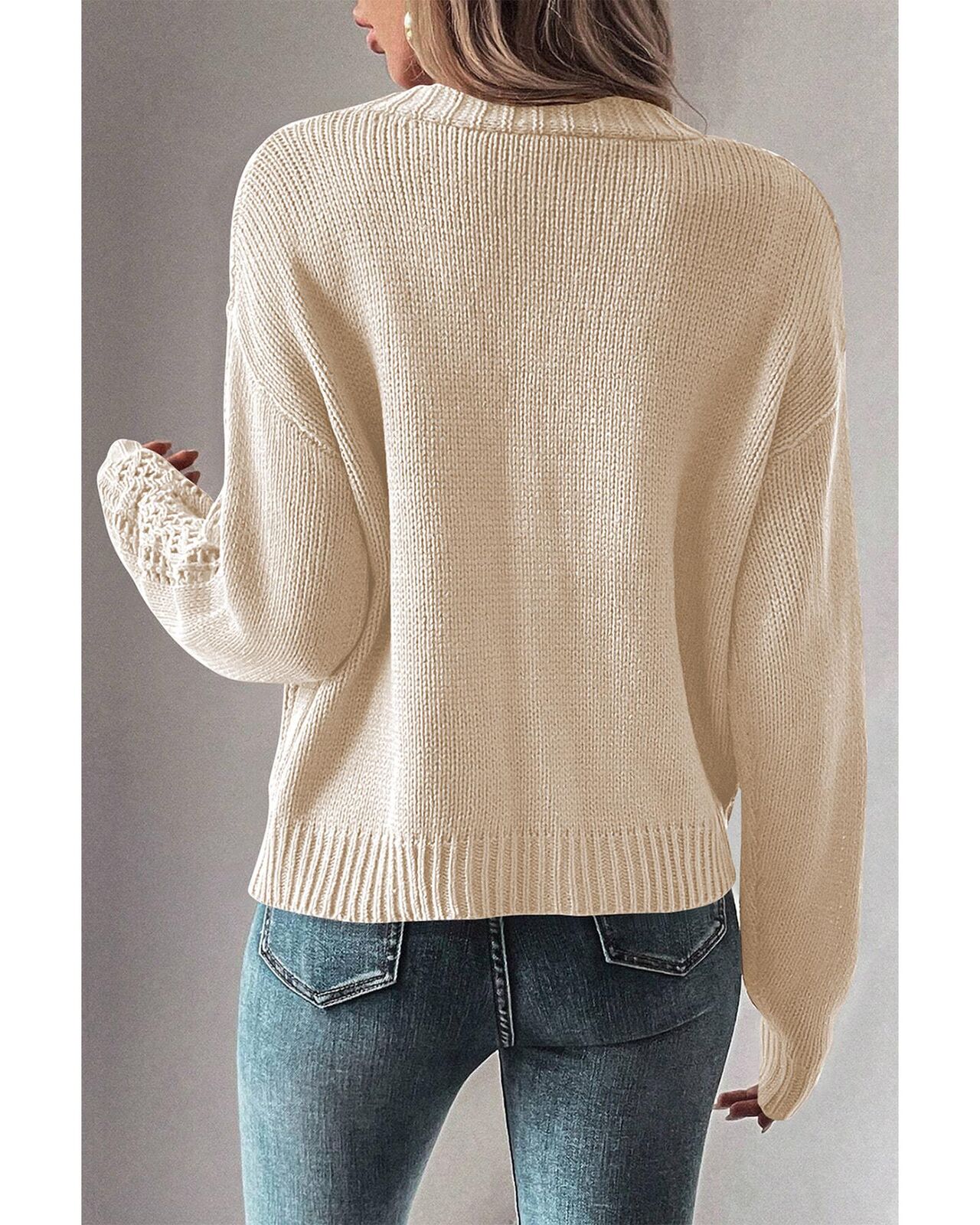 • Beige open knit sweater cardigan