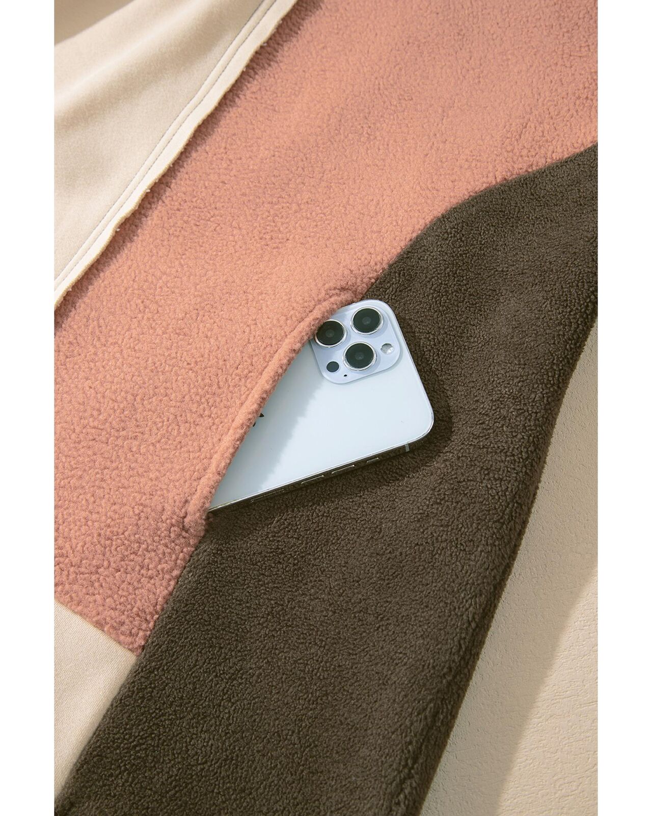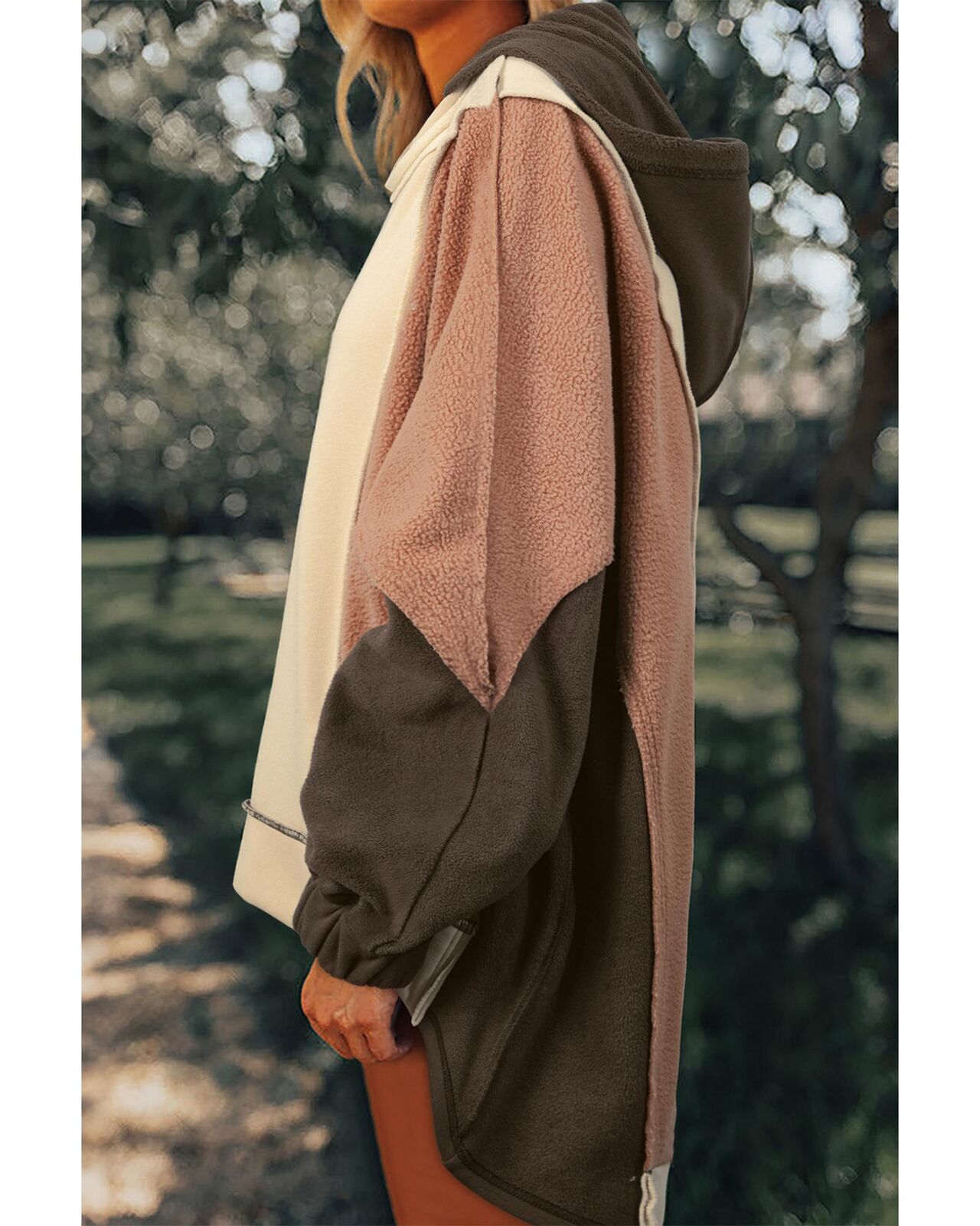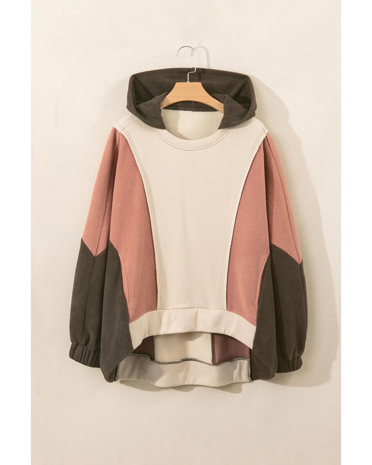 • Beige Oversized Color Block Patchwork High Low Hoodie