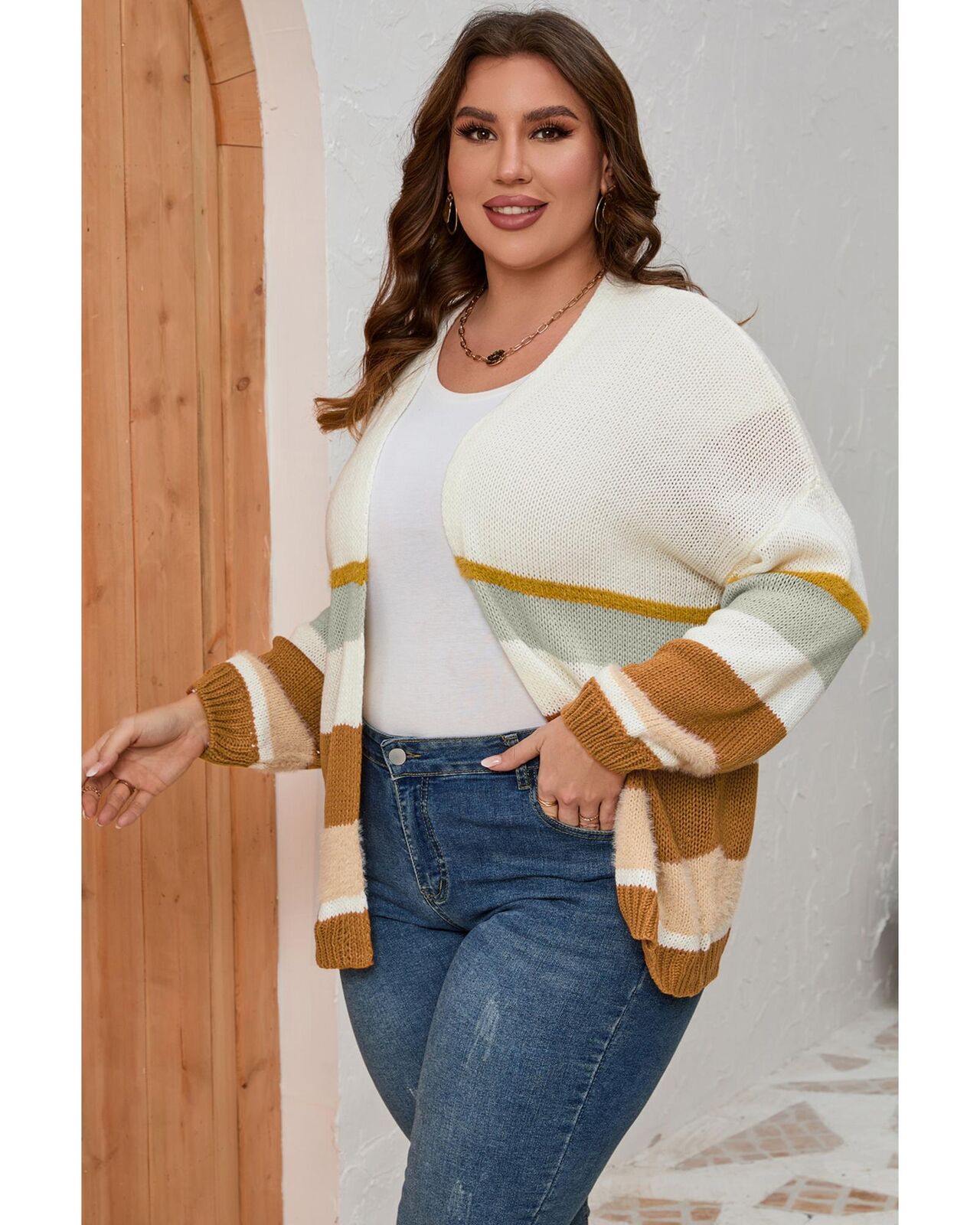 • Our styles are designed with a trendy fitted look in mind following an international size standard. For the best fit we suggest choosing one size up from your usual. Be sure to check our sizing chart to find your perfect match! Flattering and comfortable plus size cardigan Stylish striped print adds a trendy touch Easy