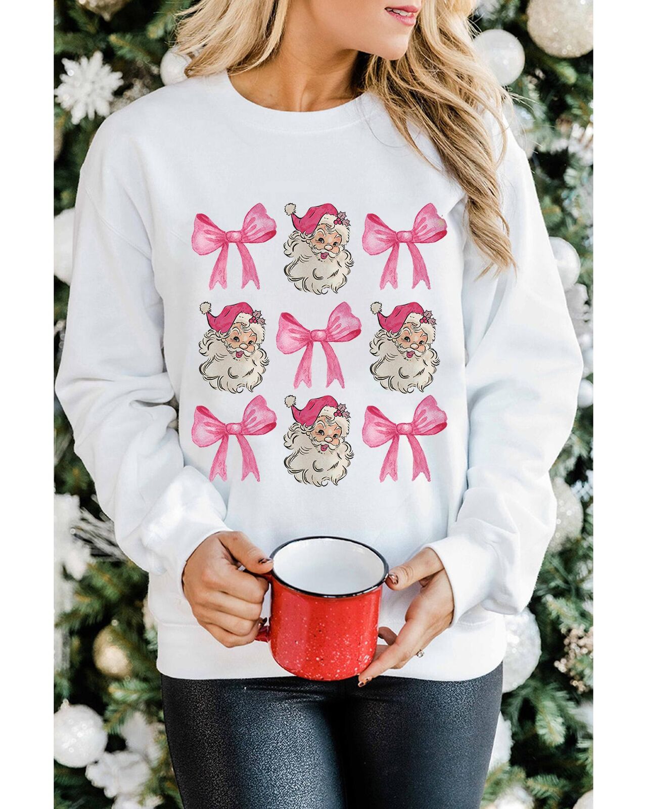 • Beige Santa Claus Bowknot Pattern Christmas Sweatshirt