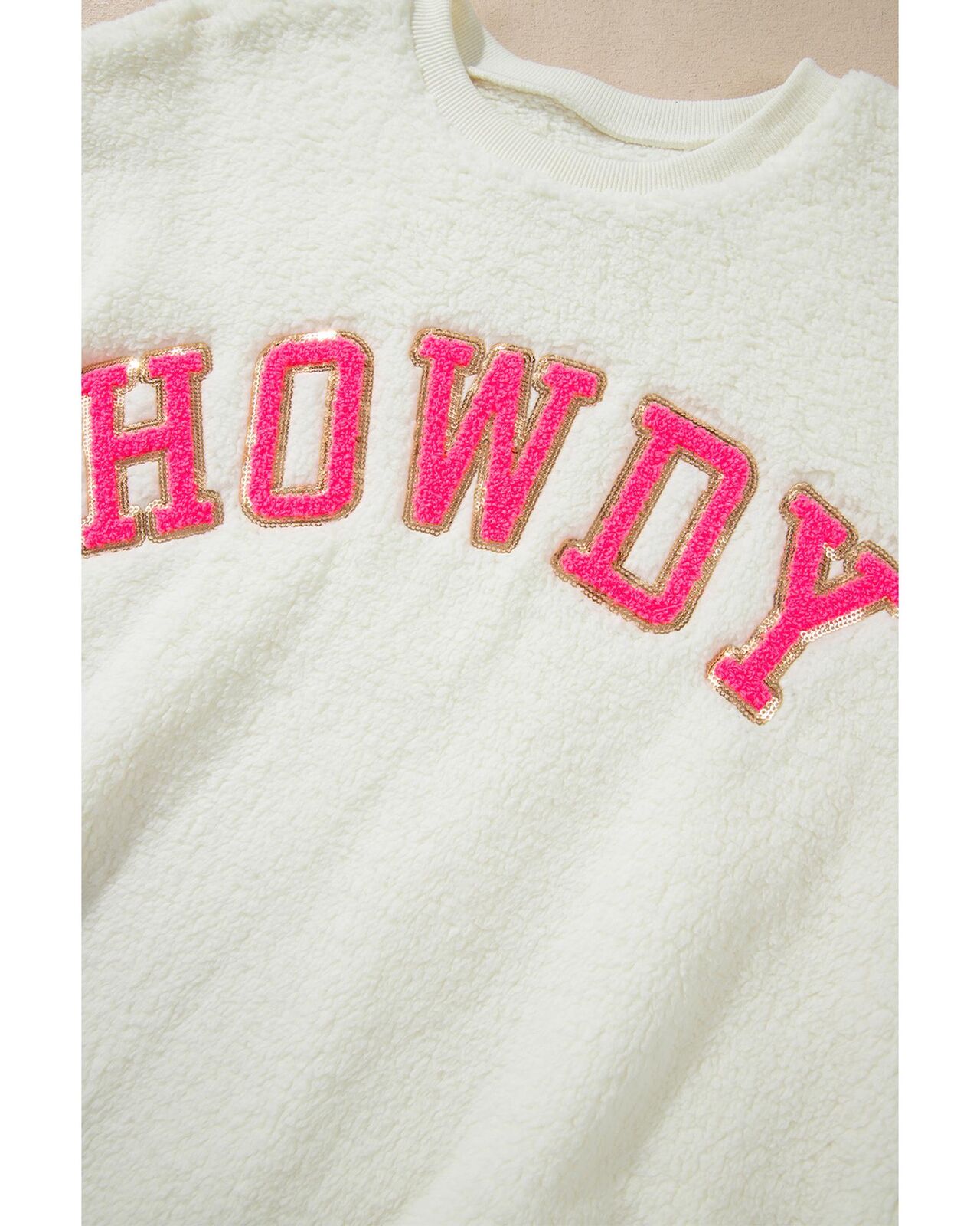 • Beige Sherpa HOWDY Patched Pullover Sweatshirt