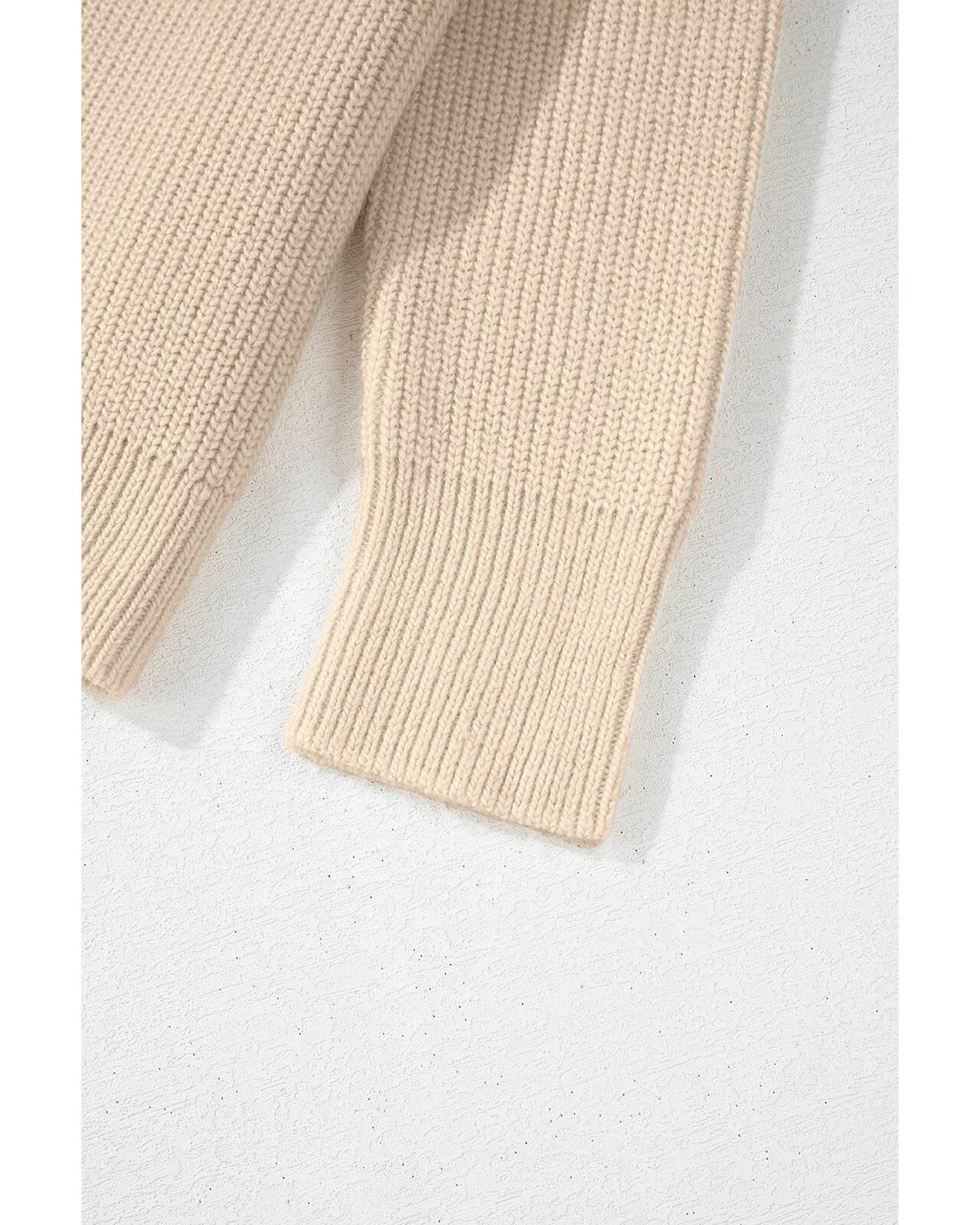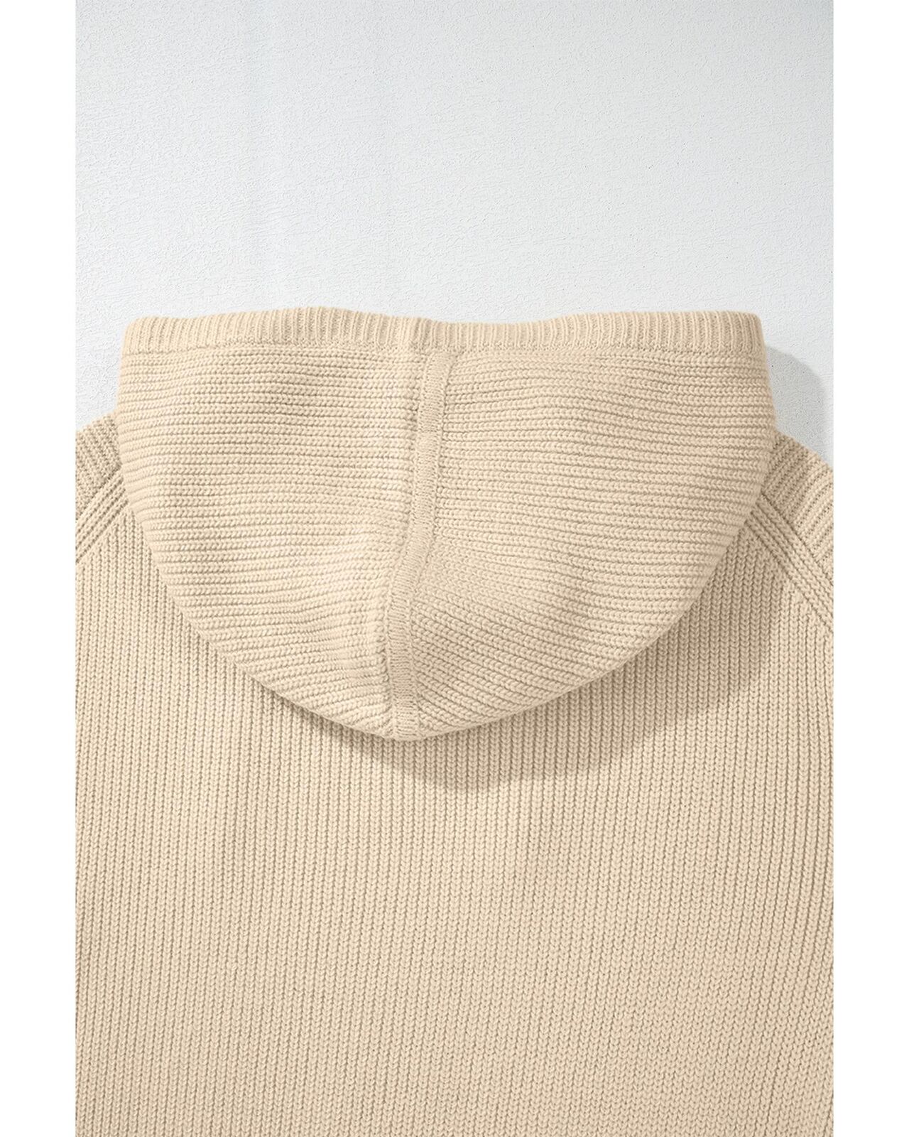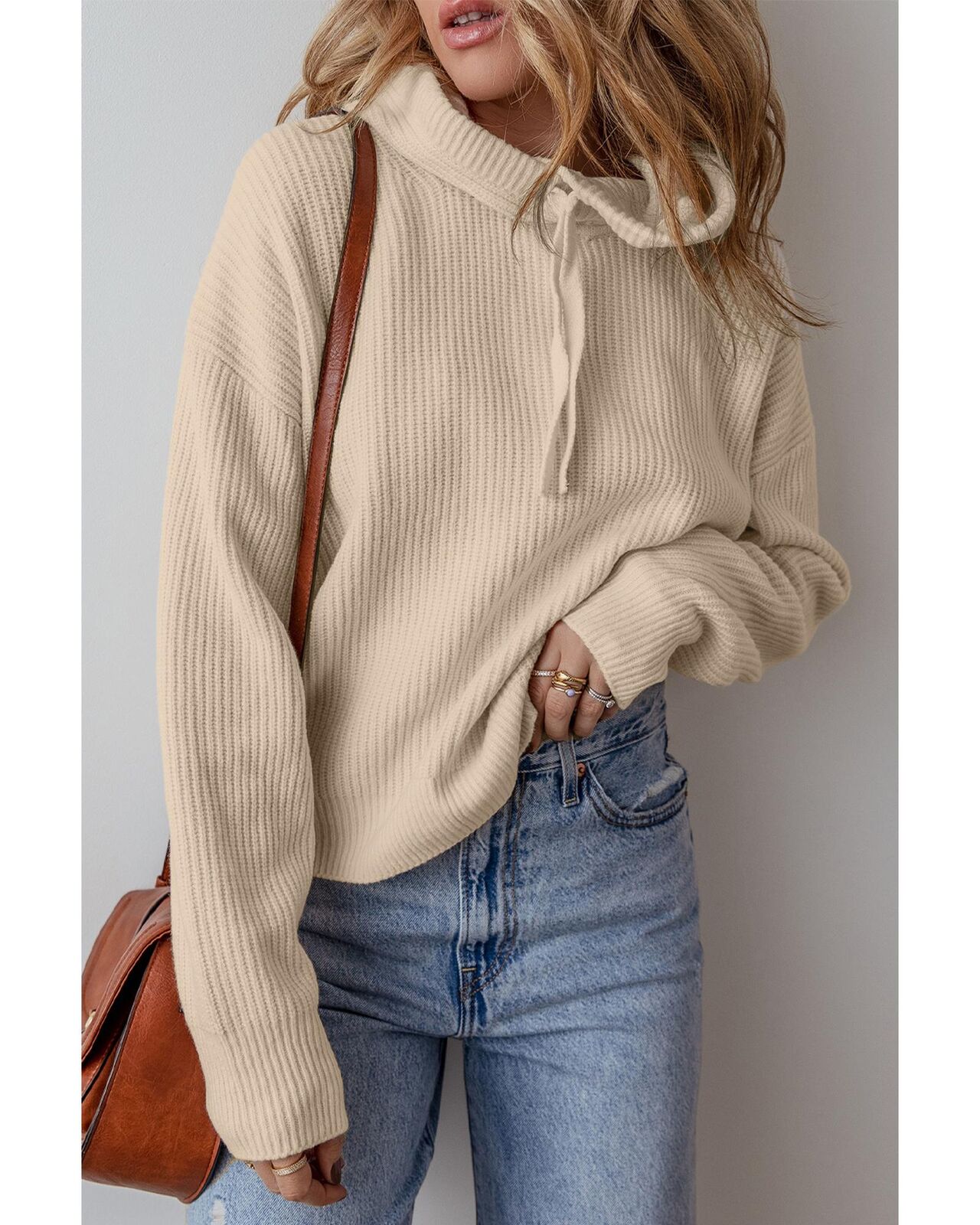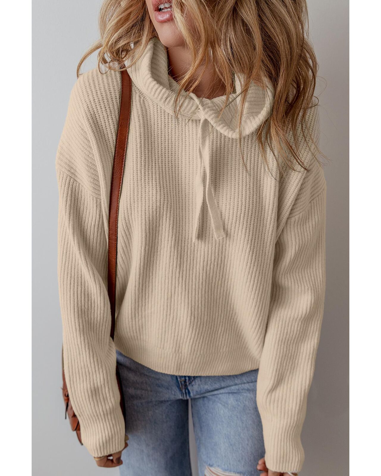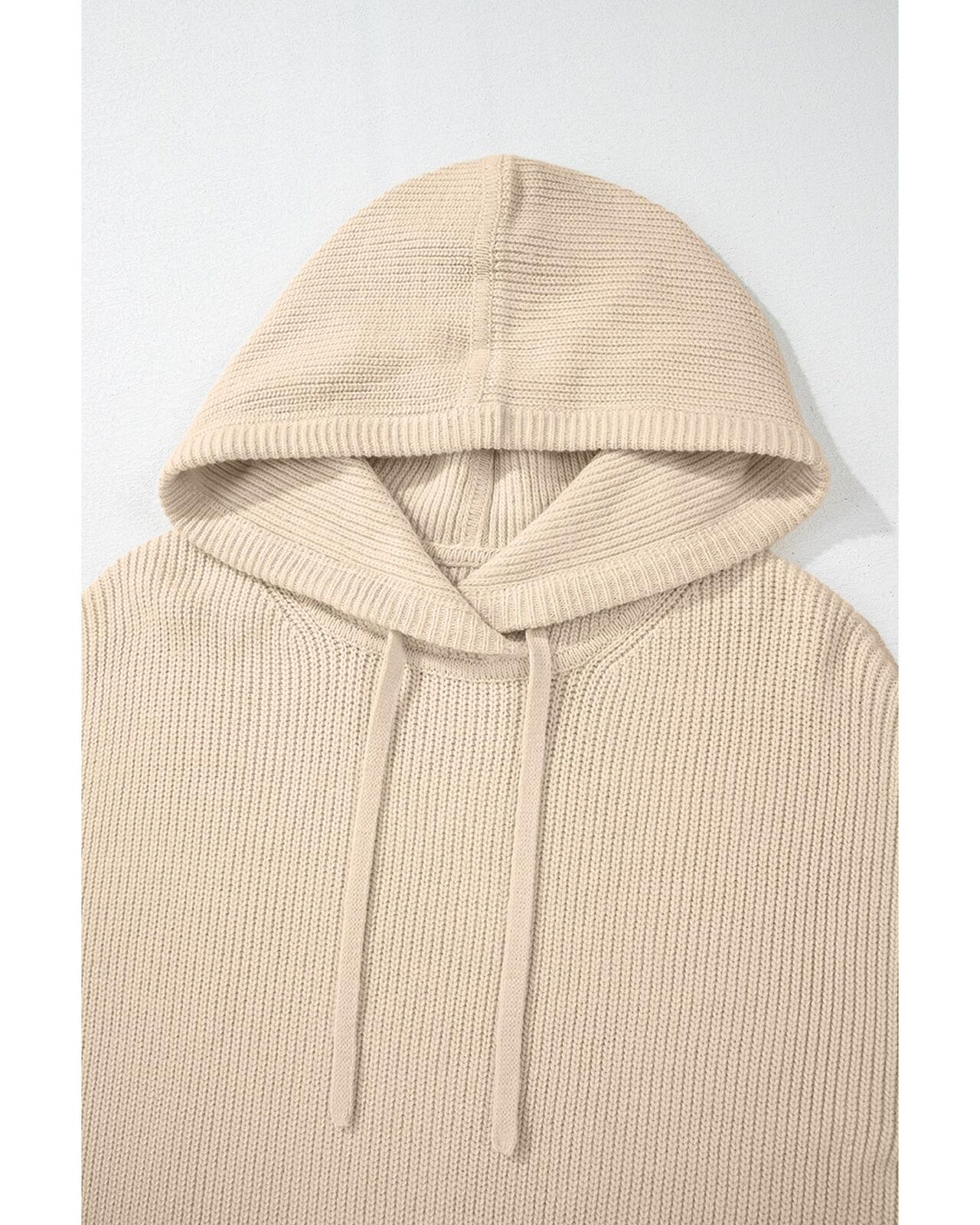 • Beige solid color hooded pullover sweater