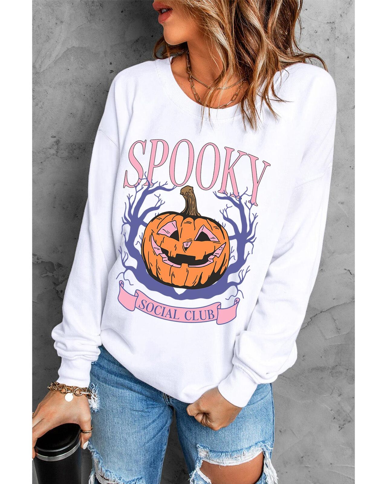 • Beige SPOOKY SOCIAL CLUB Halloween Pumpkin Face Graphic Sweatshirt