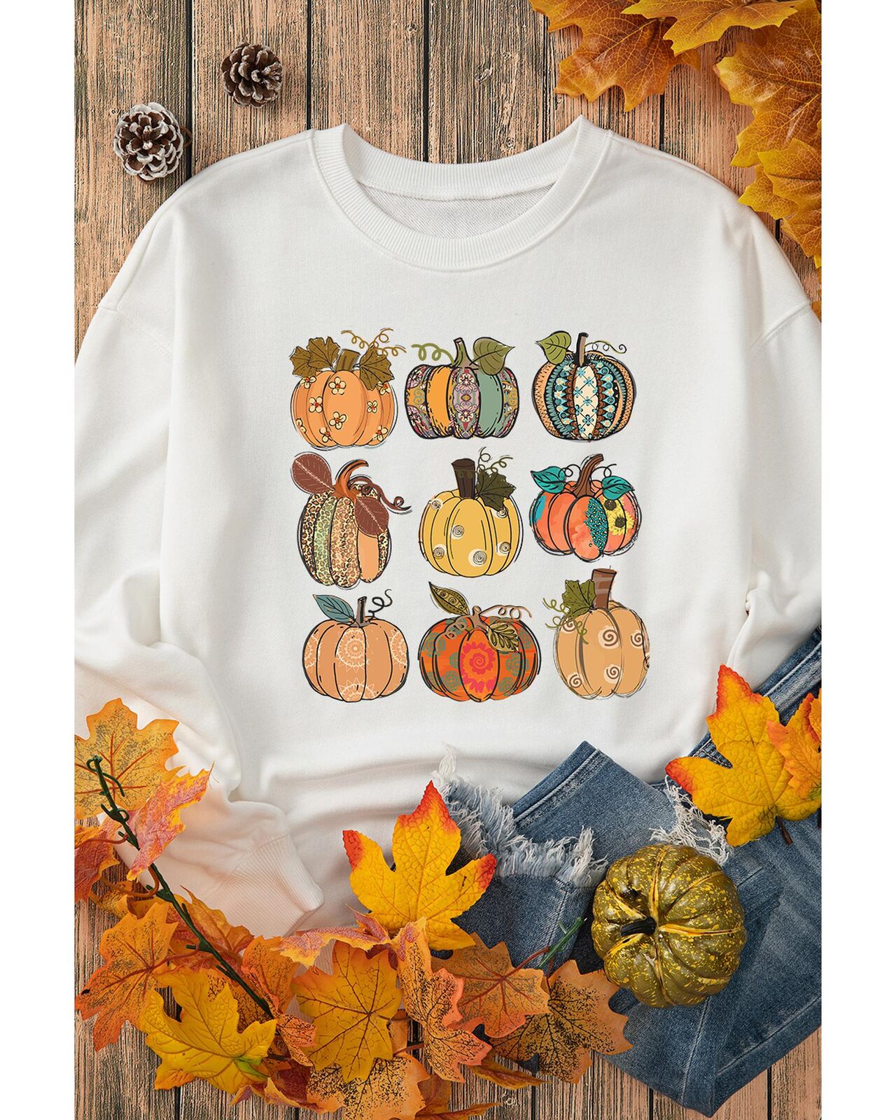 • Beige Thanksgiving Pumpkin Print Drop Shoulder Sweatshirt