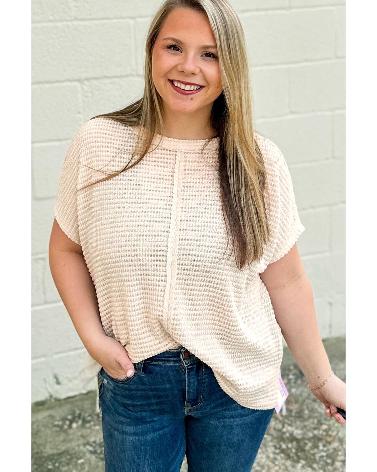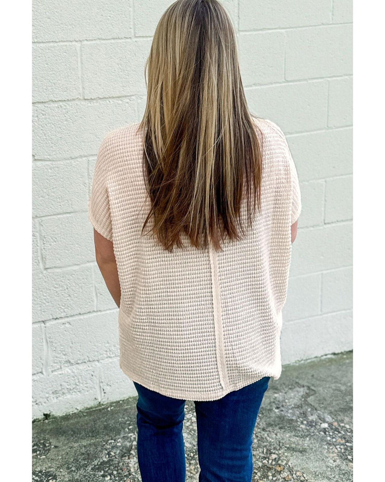 • Beige waffle textured fabric