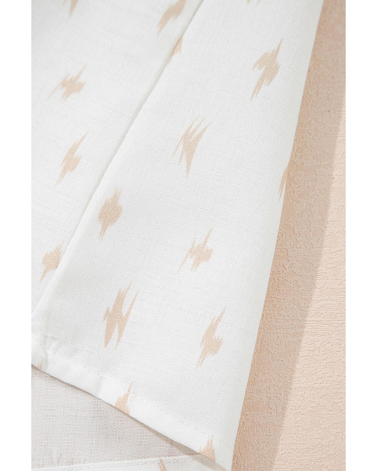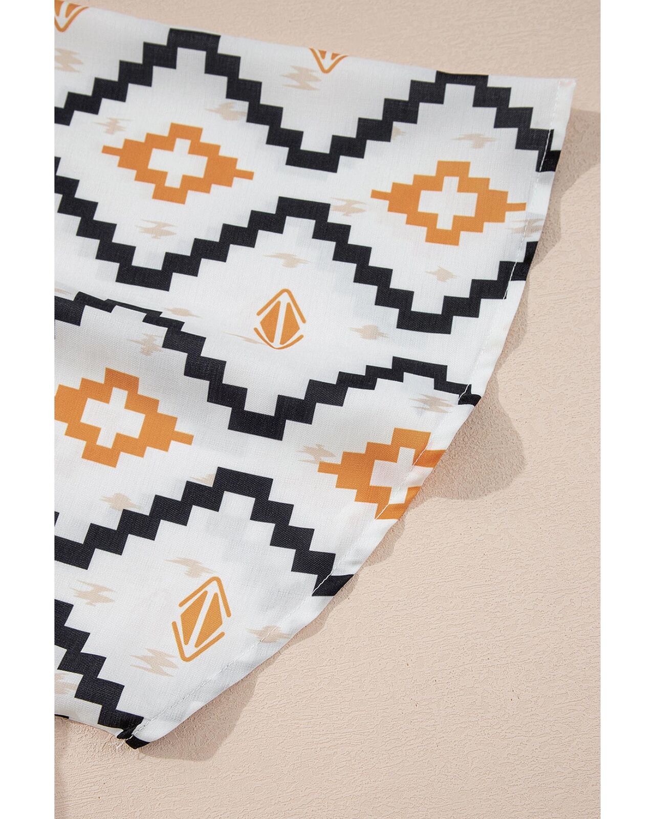 • Beige Western Aztec Print Pleated Square Neck Loose Mini Dress