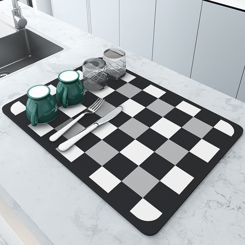 Black and white grids Kitchen Drying Mat - Super Absorbent Dish & Cup Drainer Pad 40x50cm