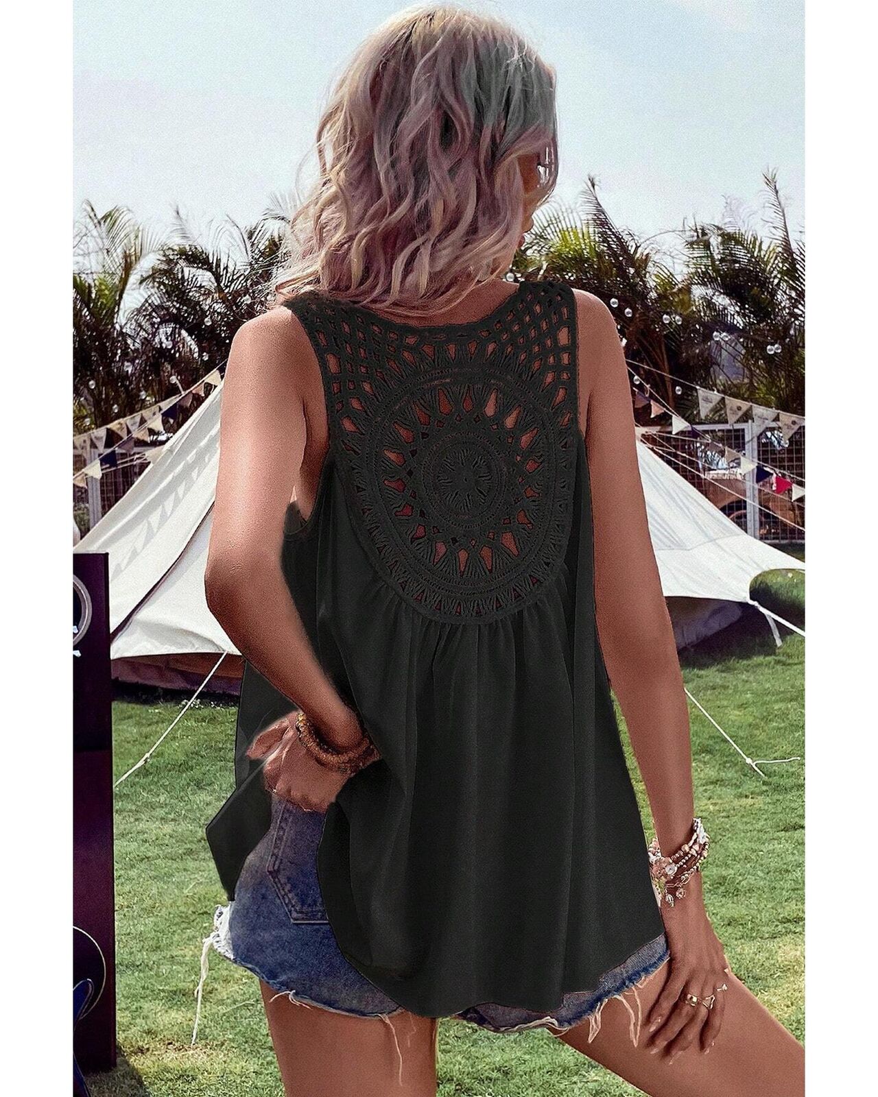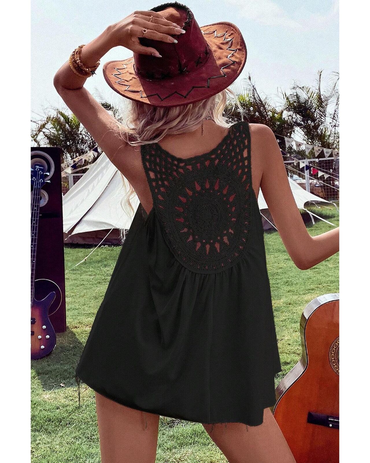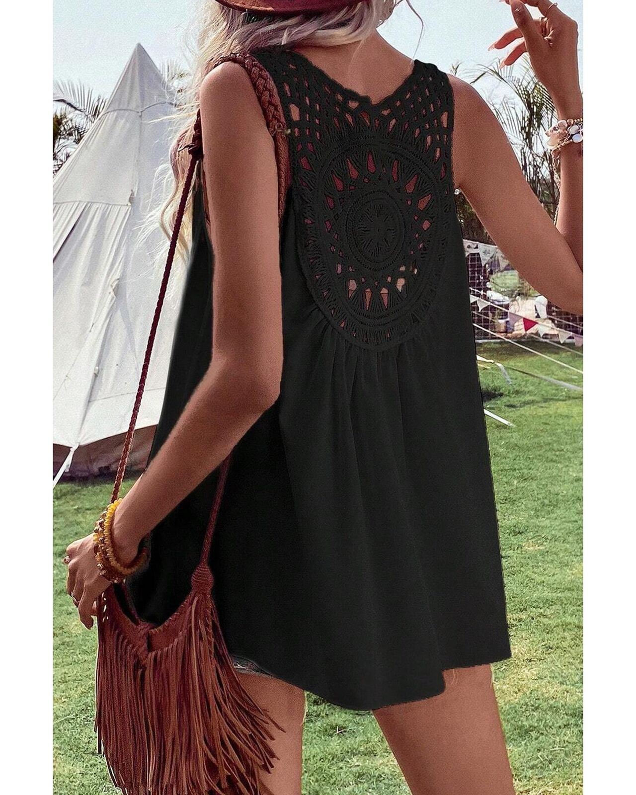 • Black Bohemian Crochet Patchwork Sleeveless Tunic