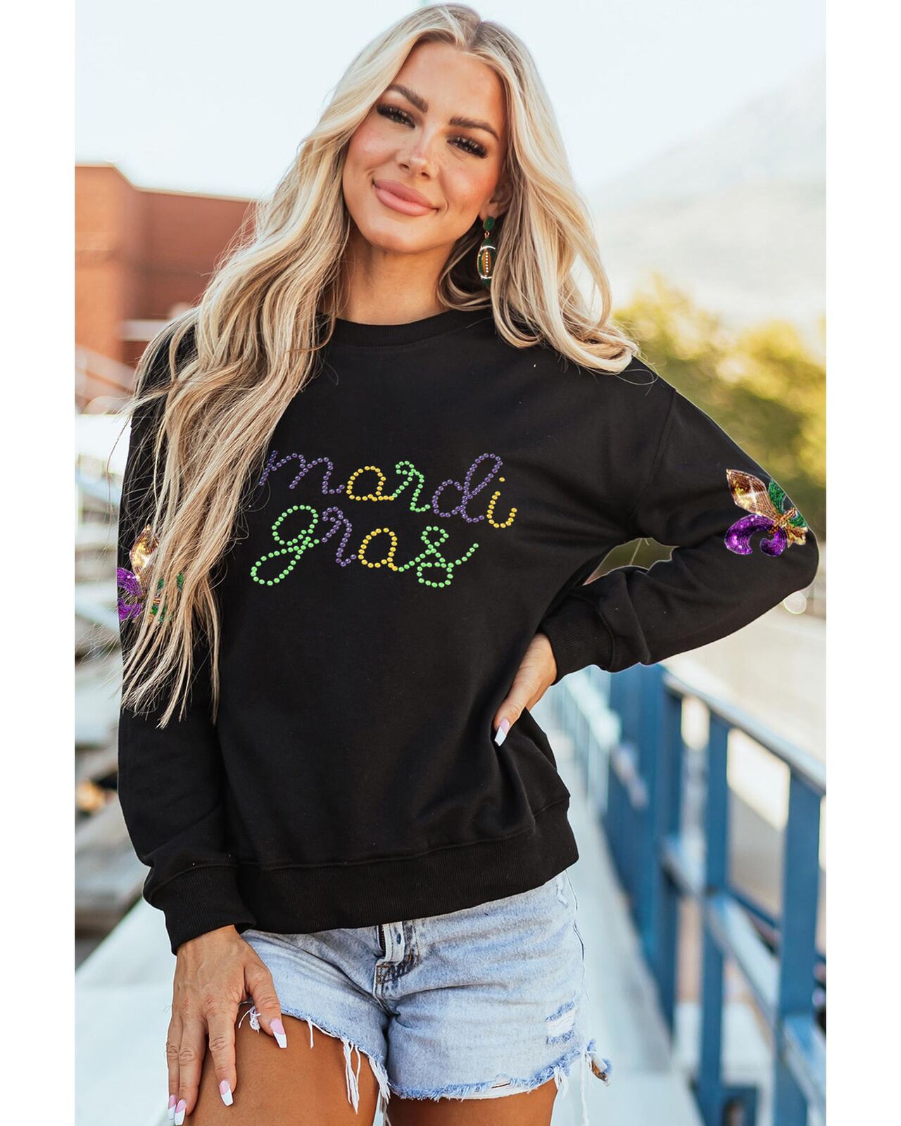 • Playful letter graphic and sequin patched details