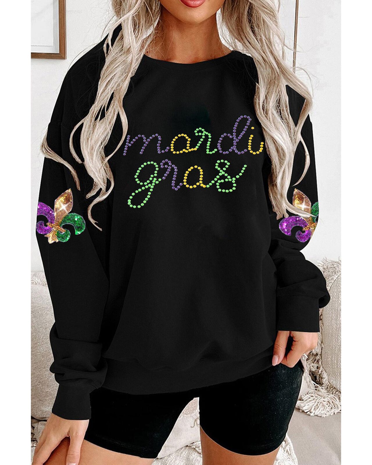 • Playful letter graphic and sequin patched details