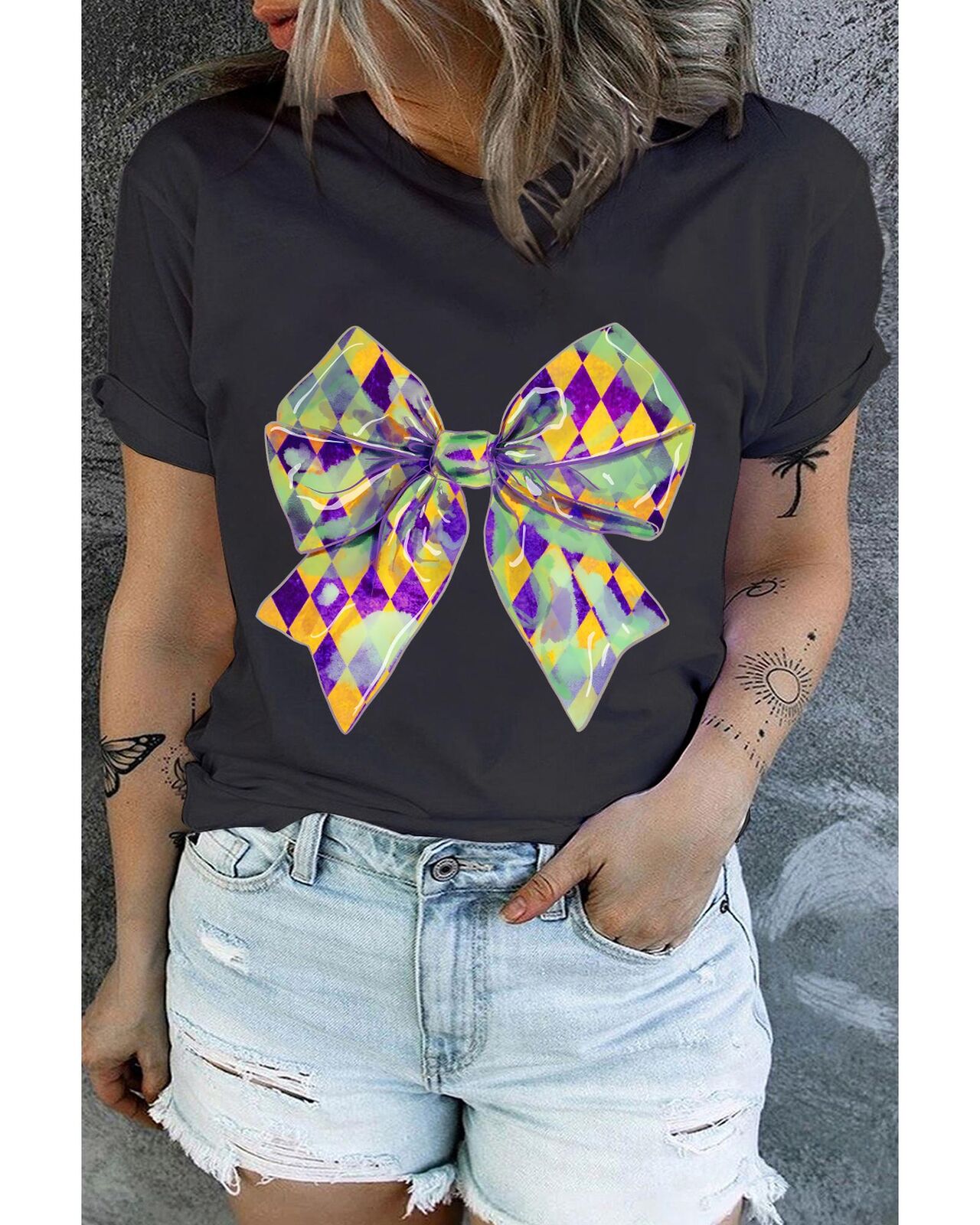 • Trendy checkered pattern combined with a bow knot print
