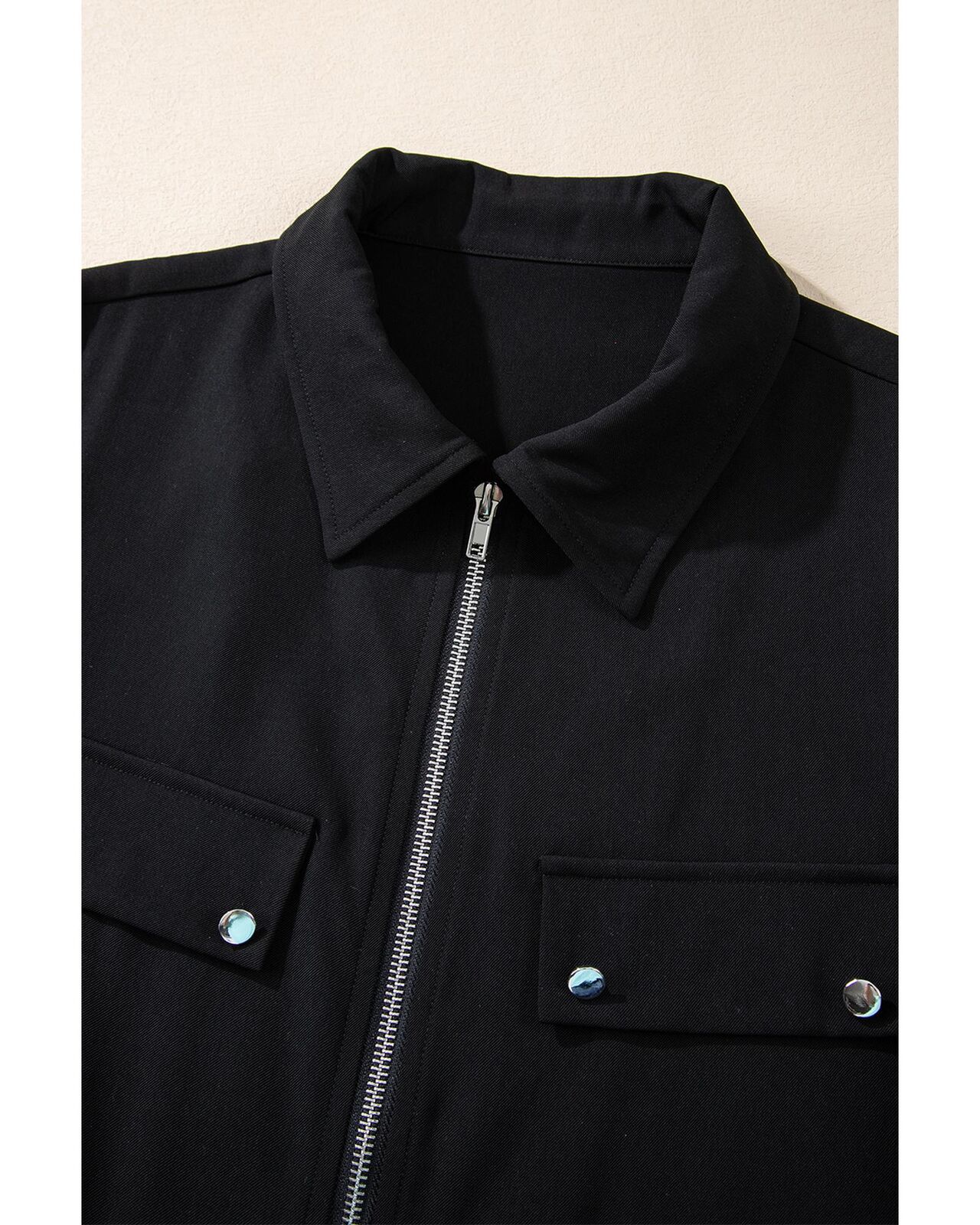 • Black Collar Tab Sleeve Zip Up Flap Detail Jacket