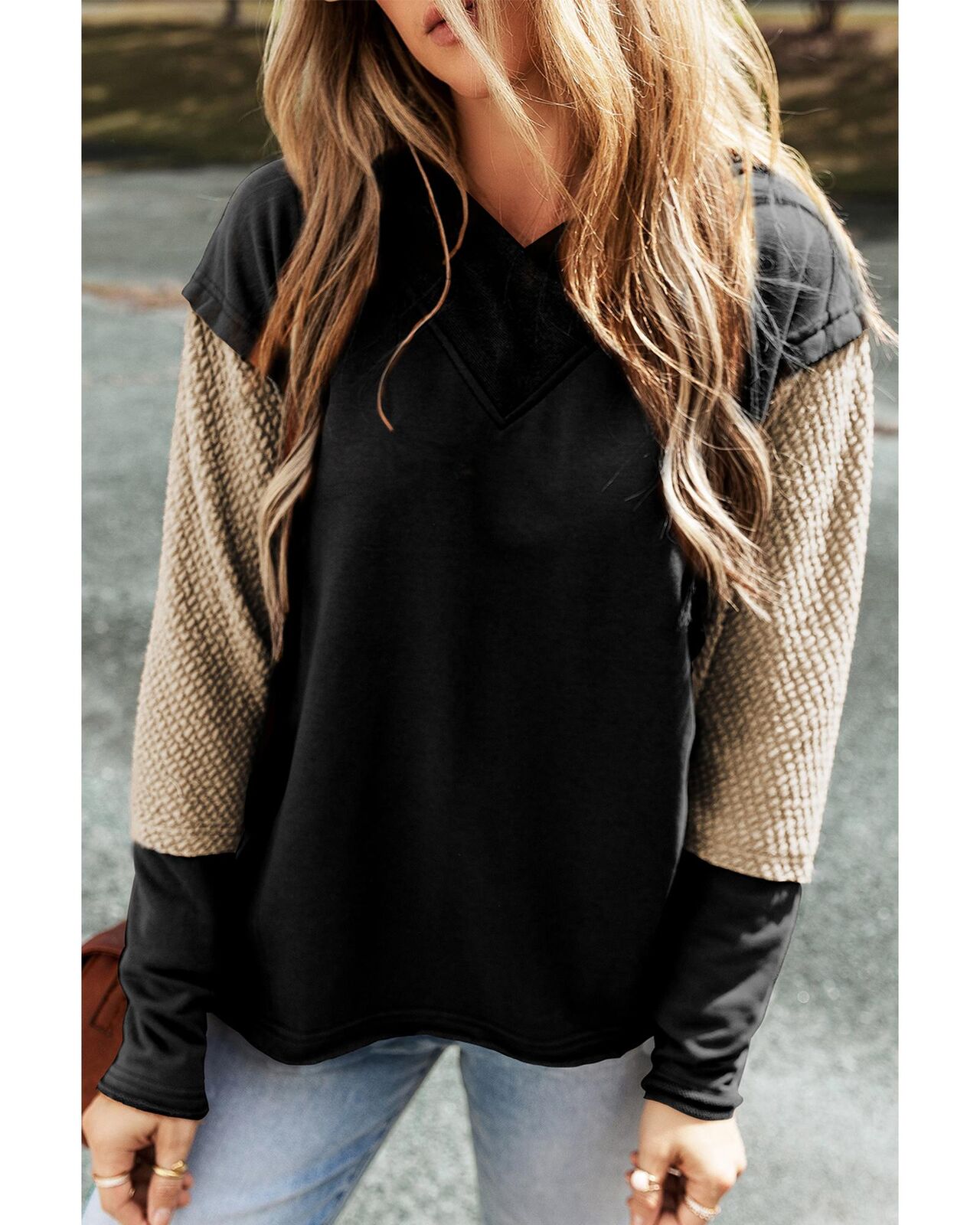 • Black Contrast Sleeves Patchwork Colorblock Hoodie