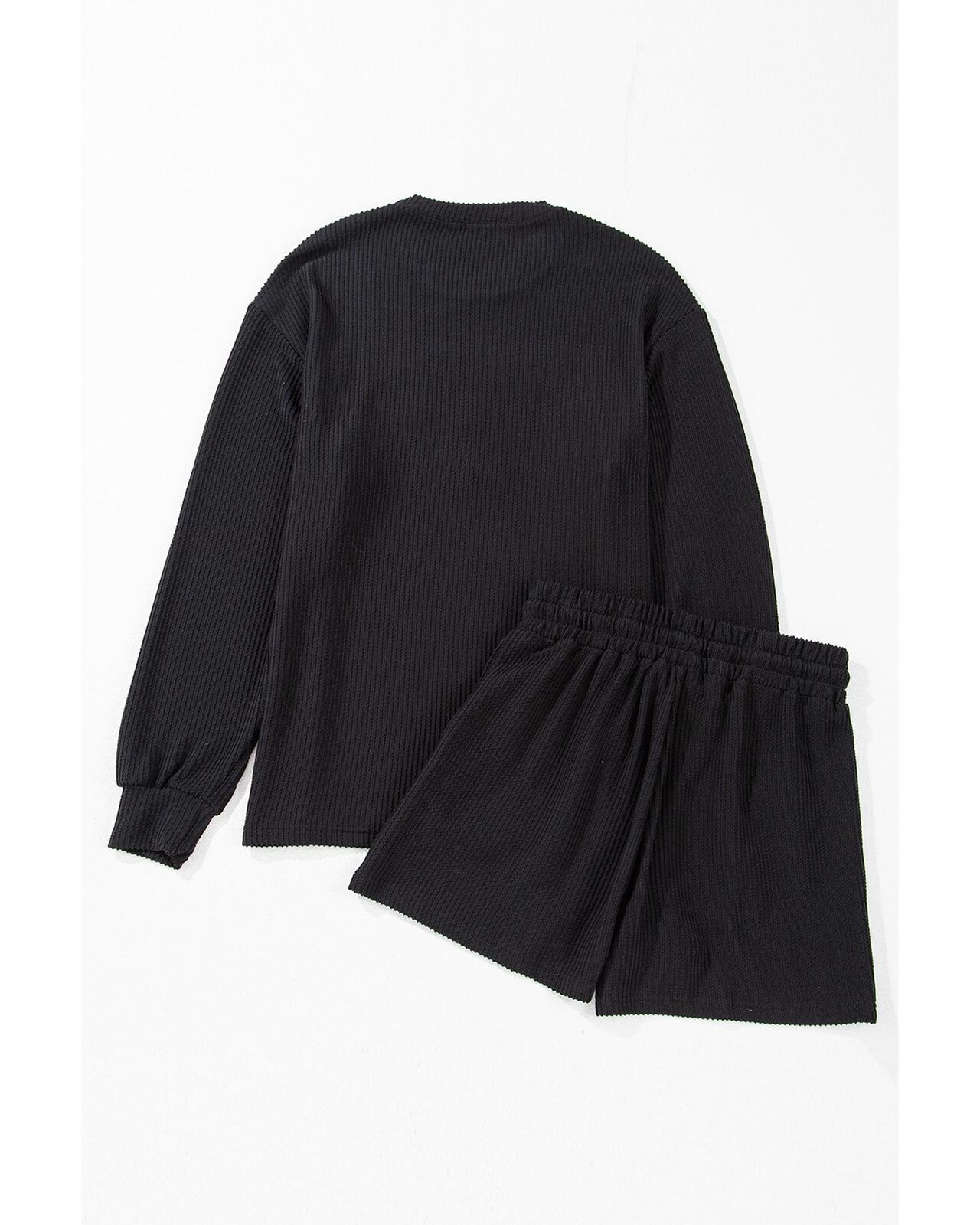 • Black Corded MERRY Graphic Long Sleeve Top and Shorts Set