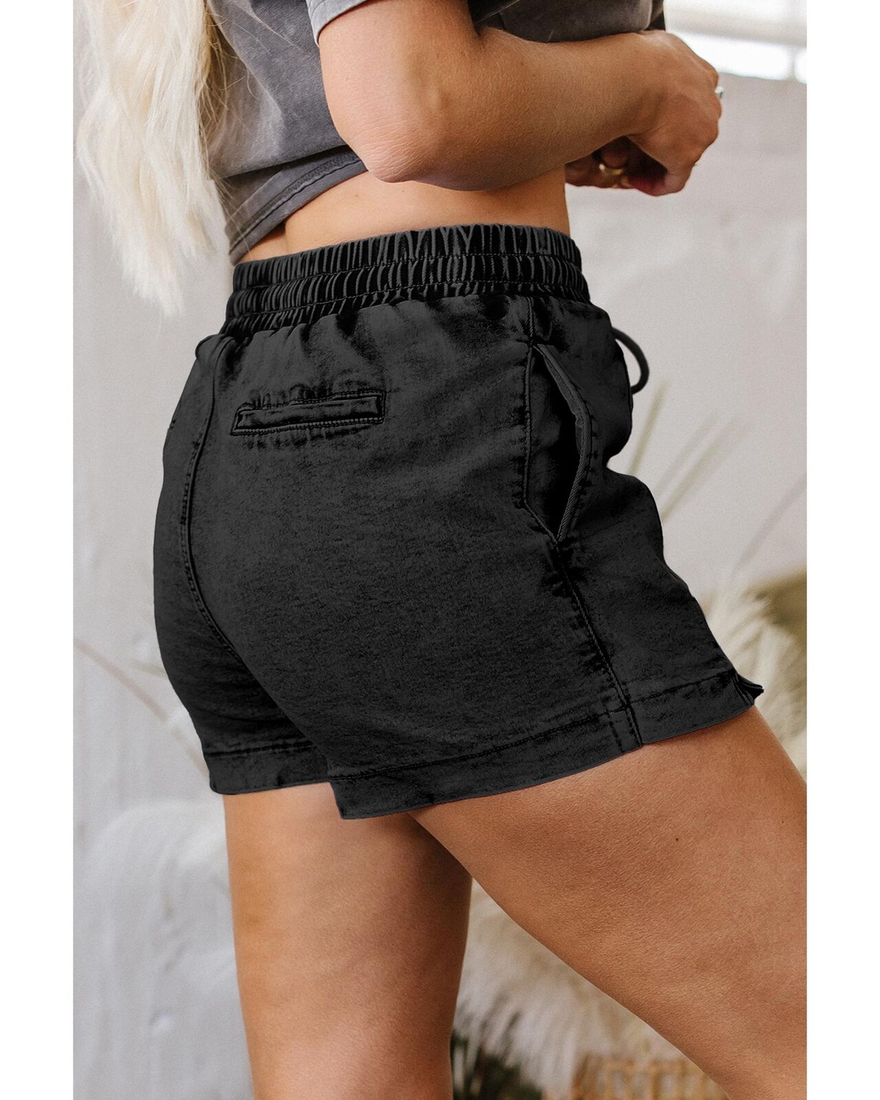 • Black drawstring high waist pocketed denim shorts