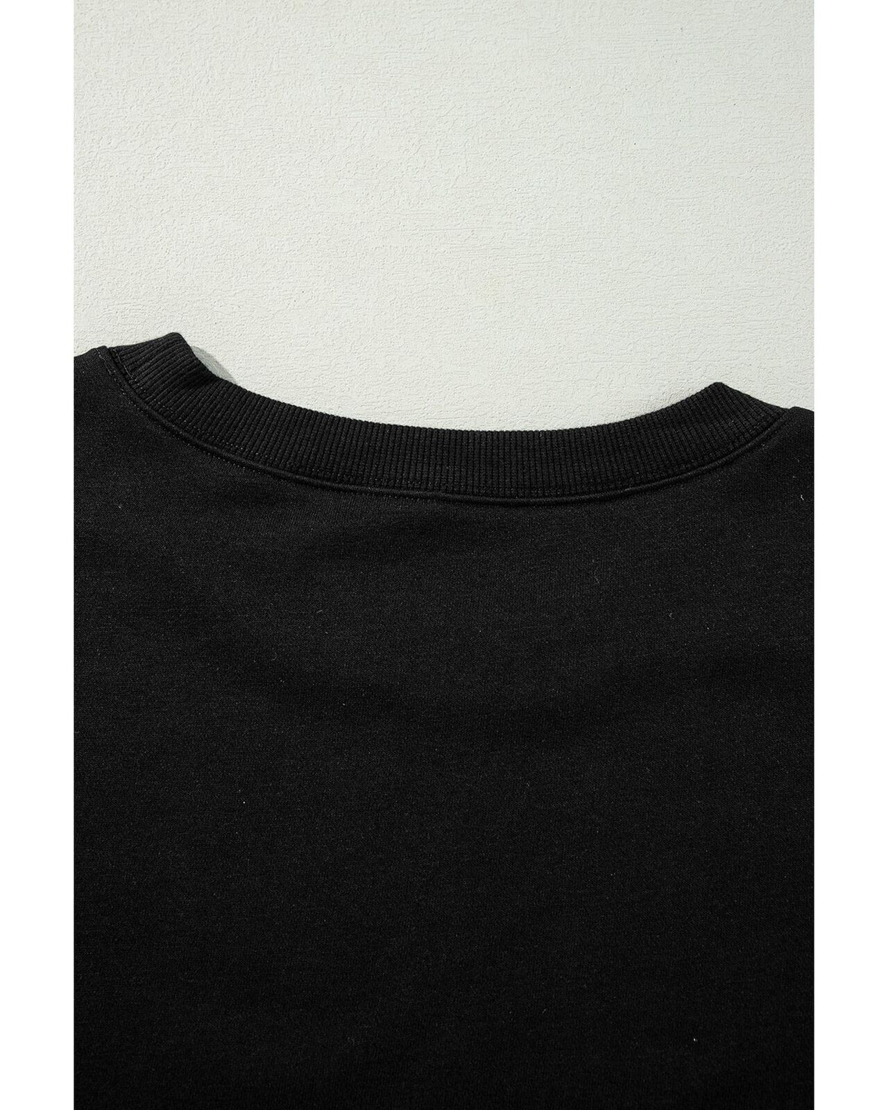 • Black Exposed Seam Drop Shoulder Round Neck Sweatshirt with Slits