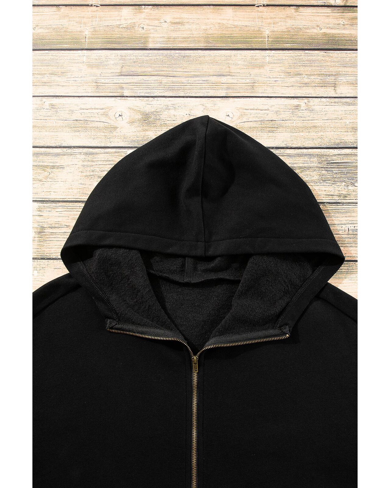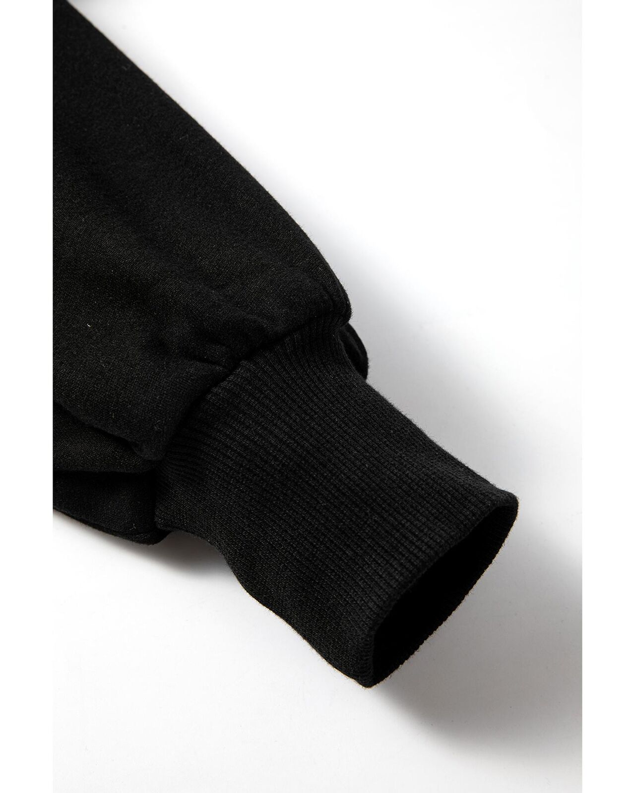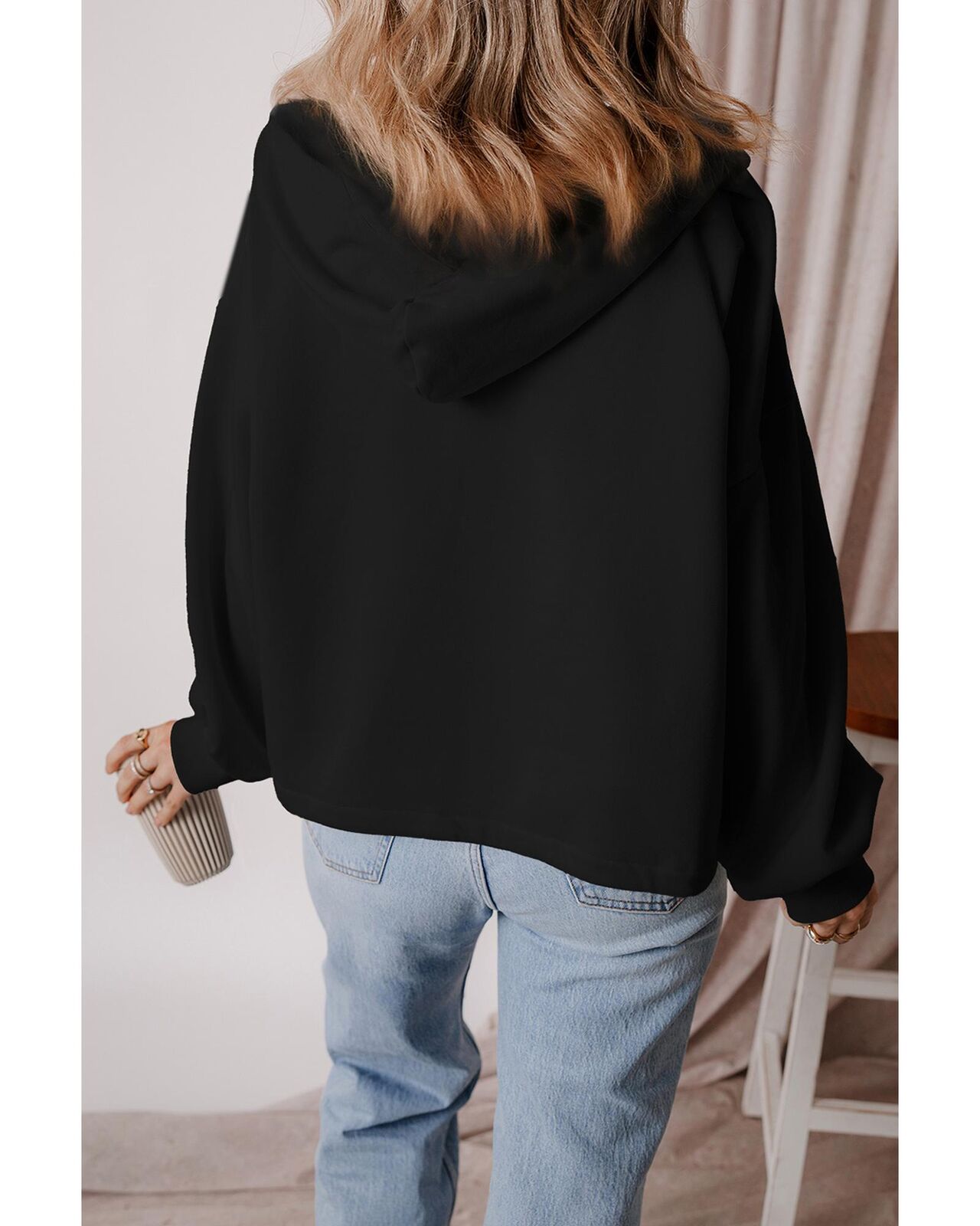 • Black Fleece Lined Half Zipper Kangaroo Pockets Loose Hoodie