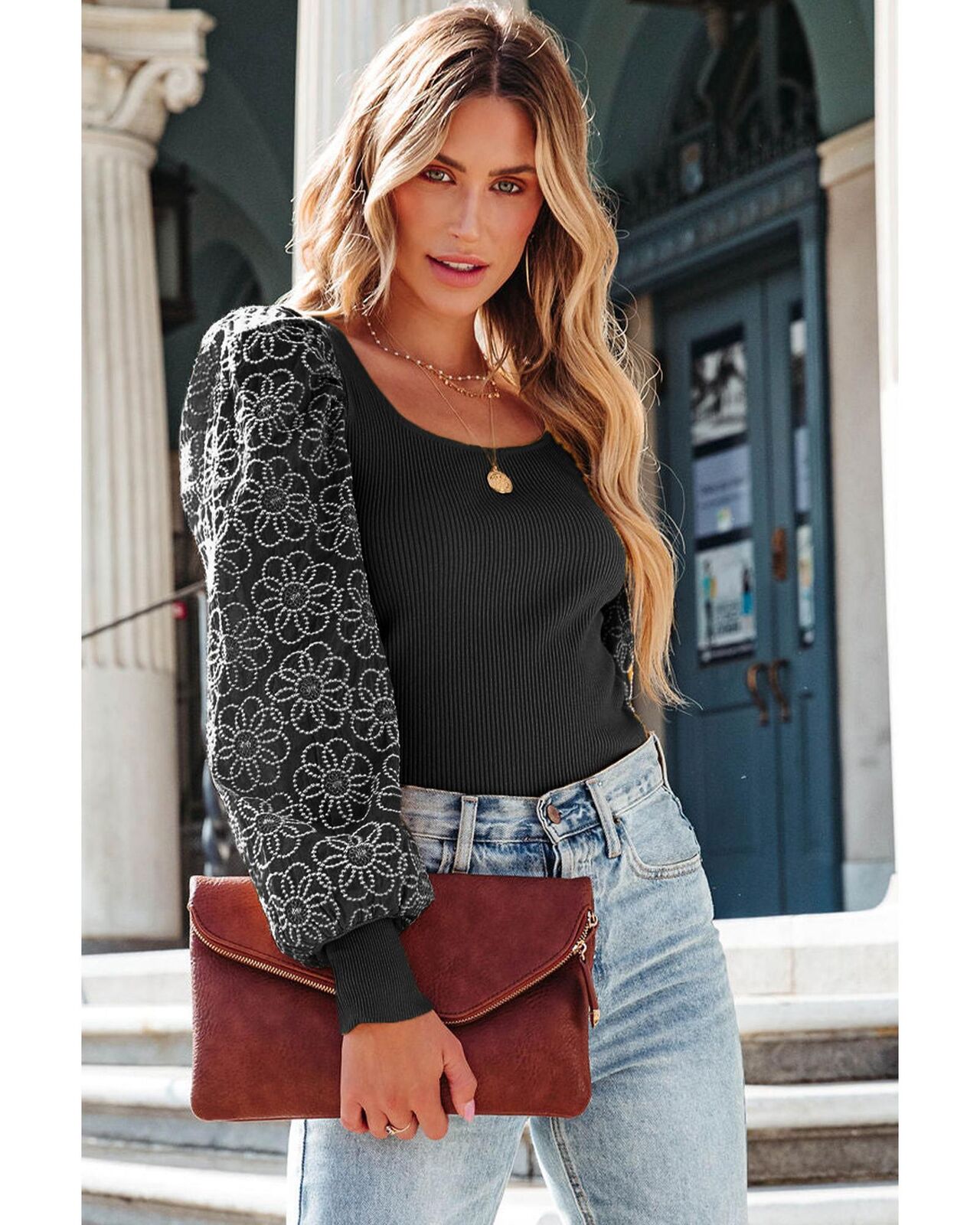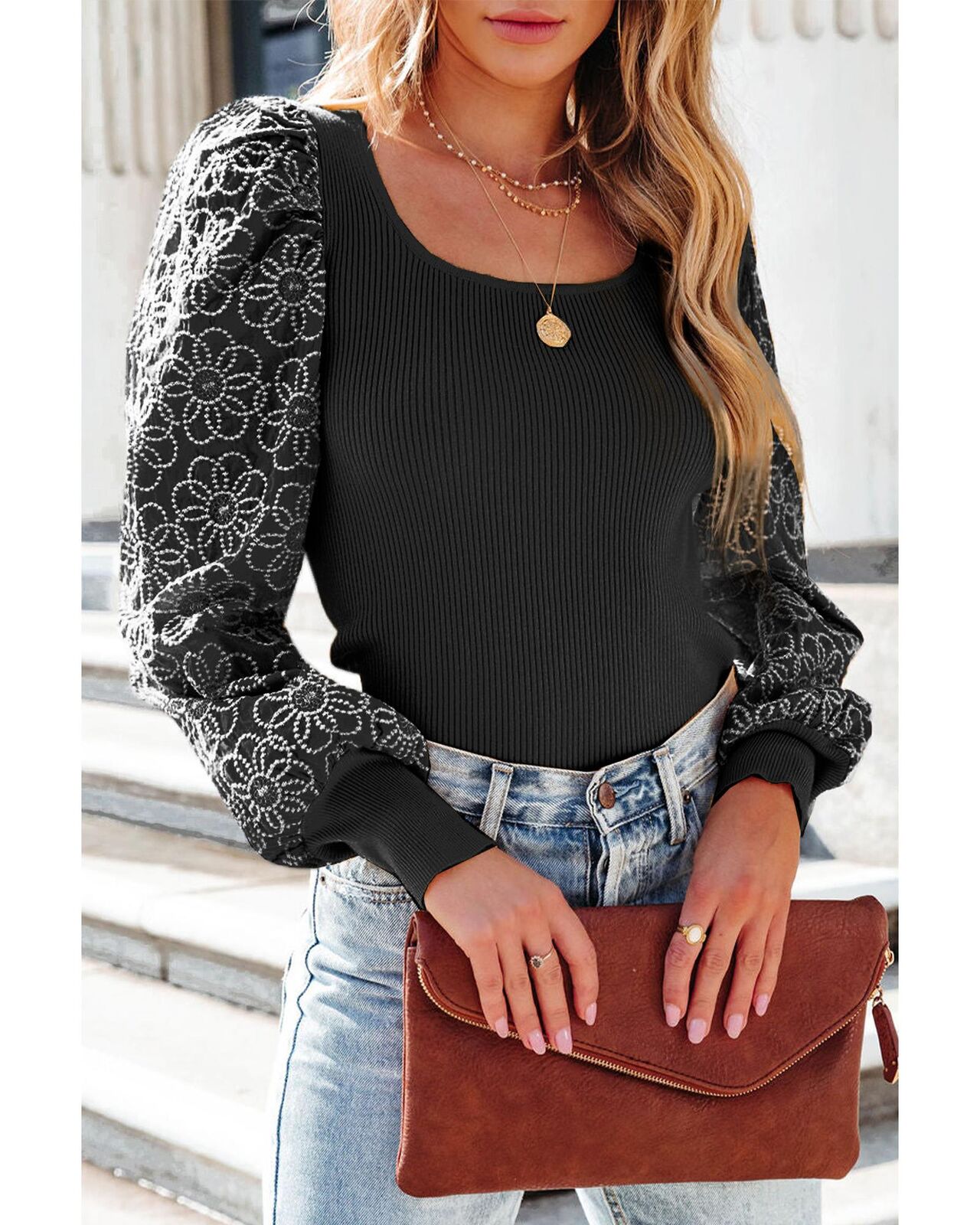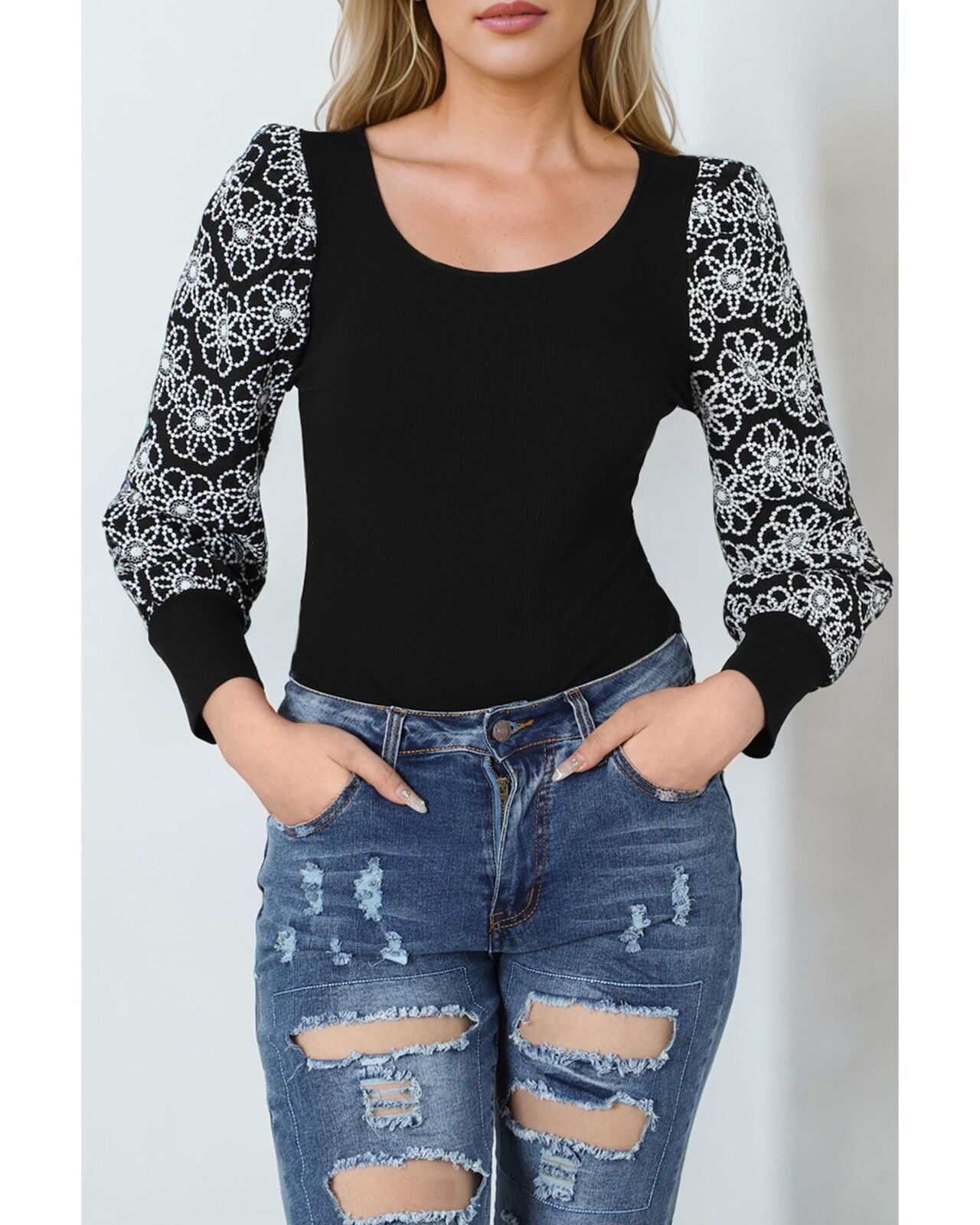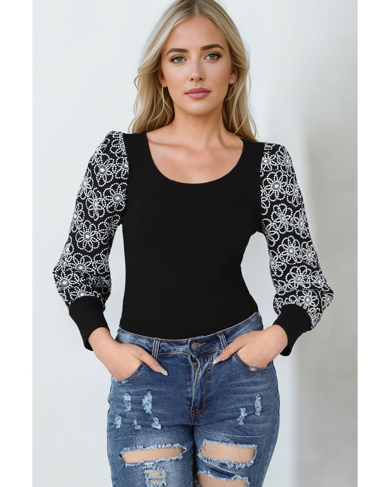 • Cute puff sleeves with lace floral patterns