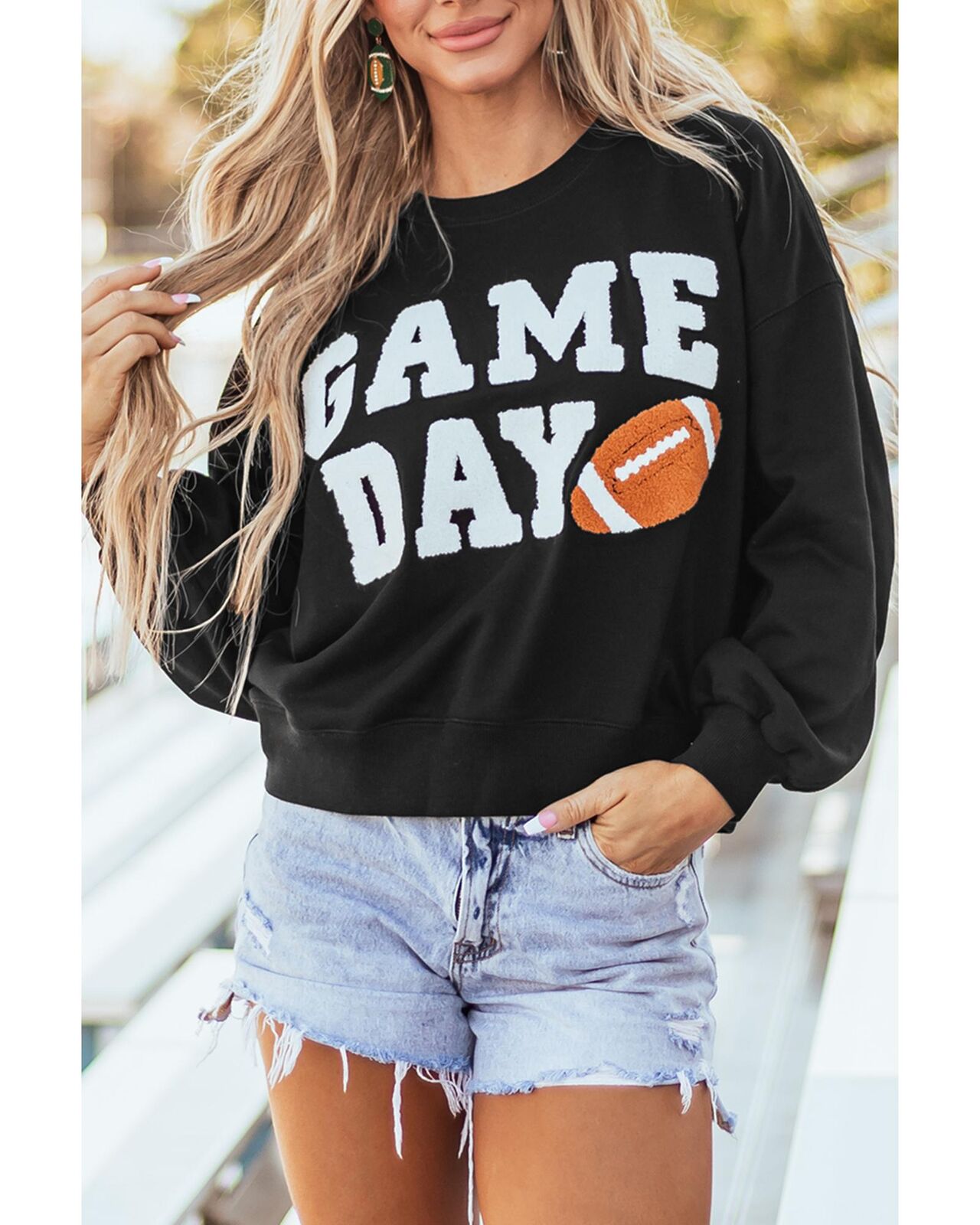• Black GAME DAY Graphic Varsity Pullover Sweatshirt