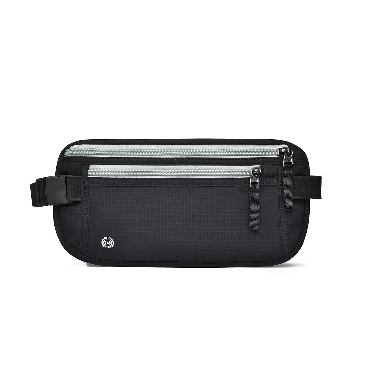 Black(Gray Zipper) Nylon Travel Waist Pack - Waterproof, RFID Blocking, Lightweight