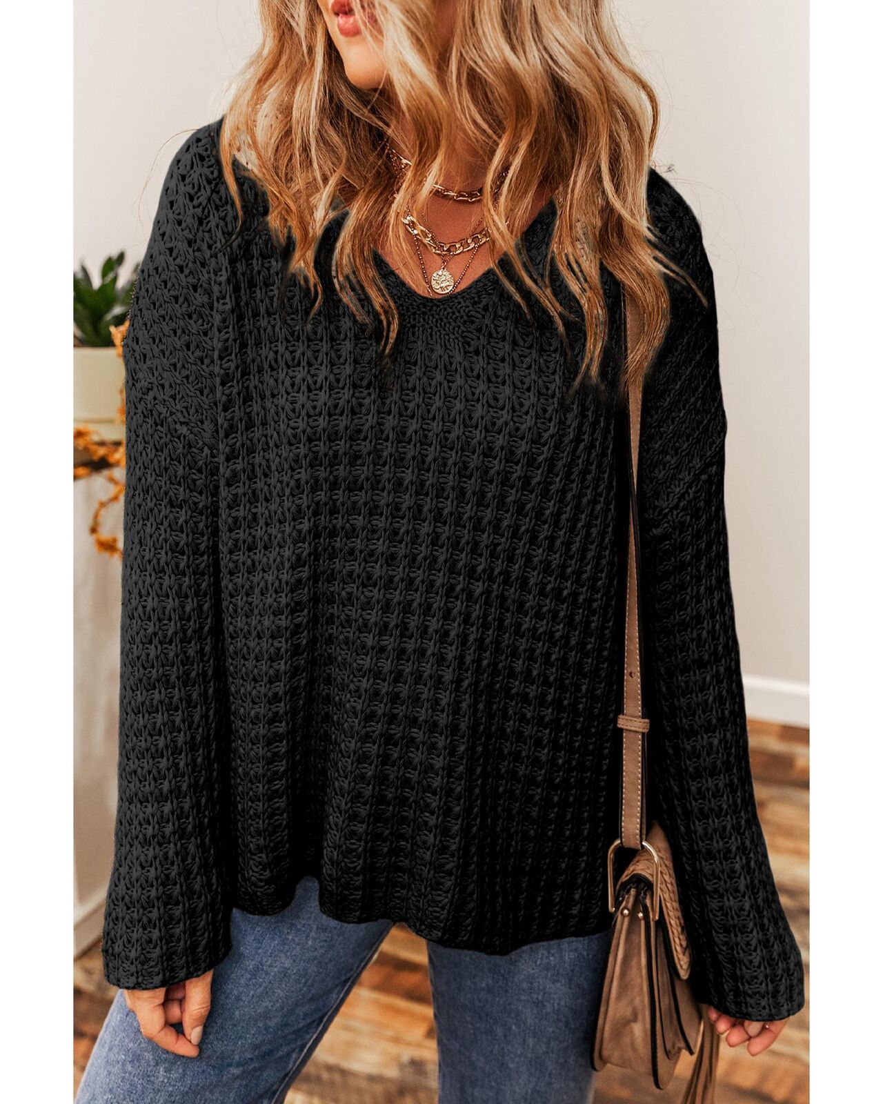 • Black sweater with hollow