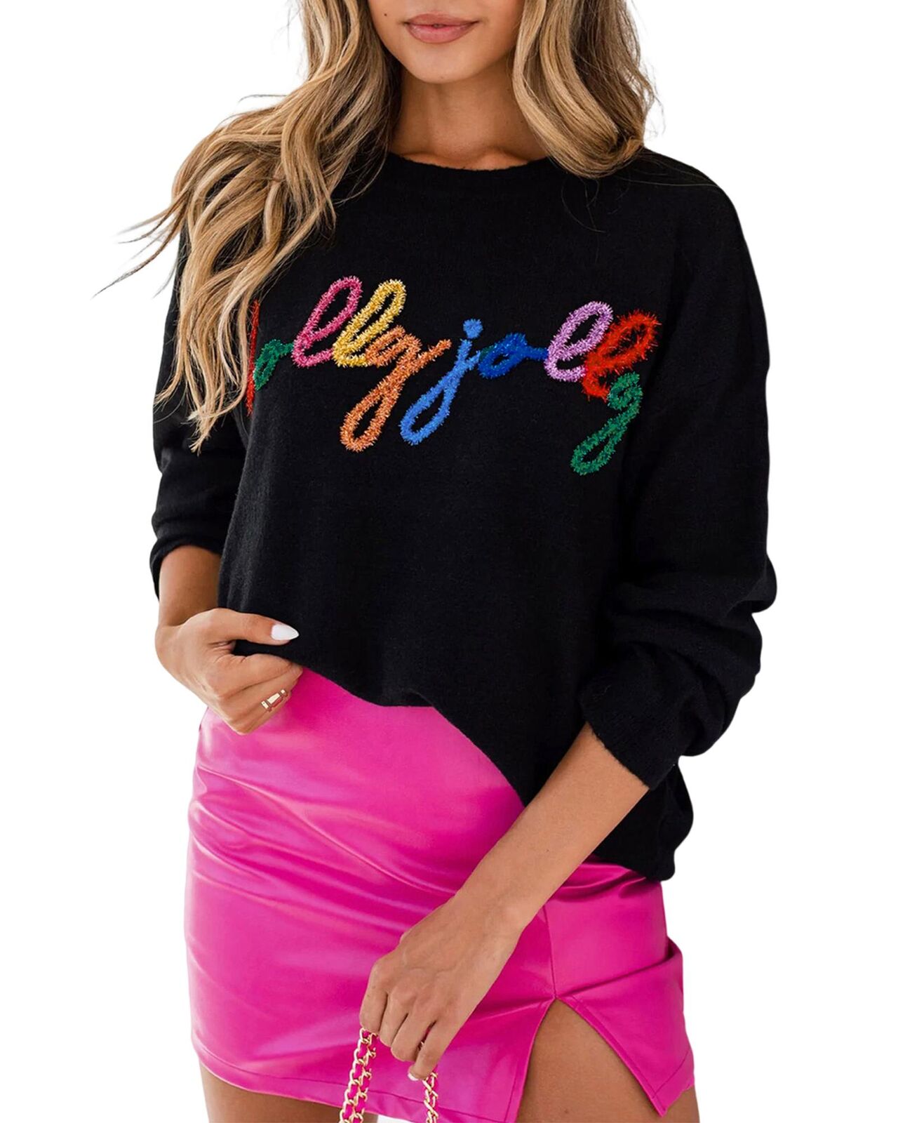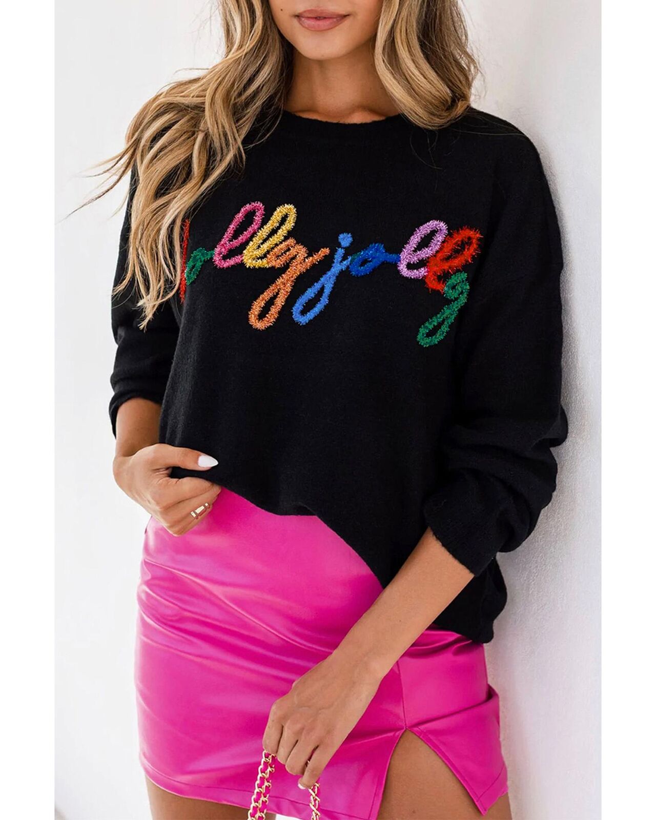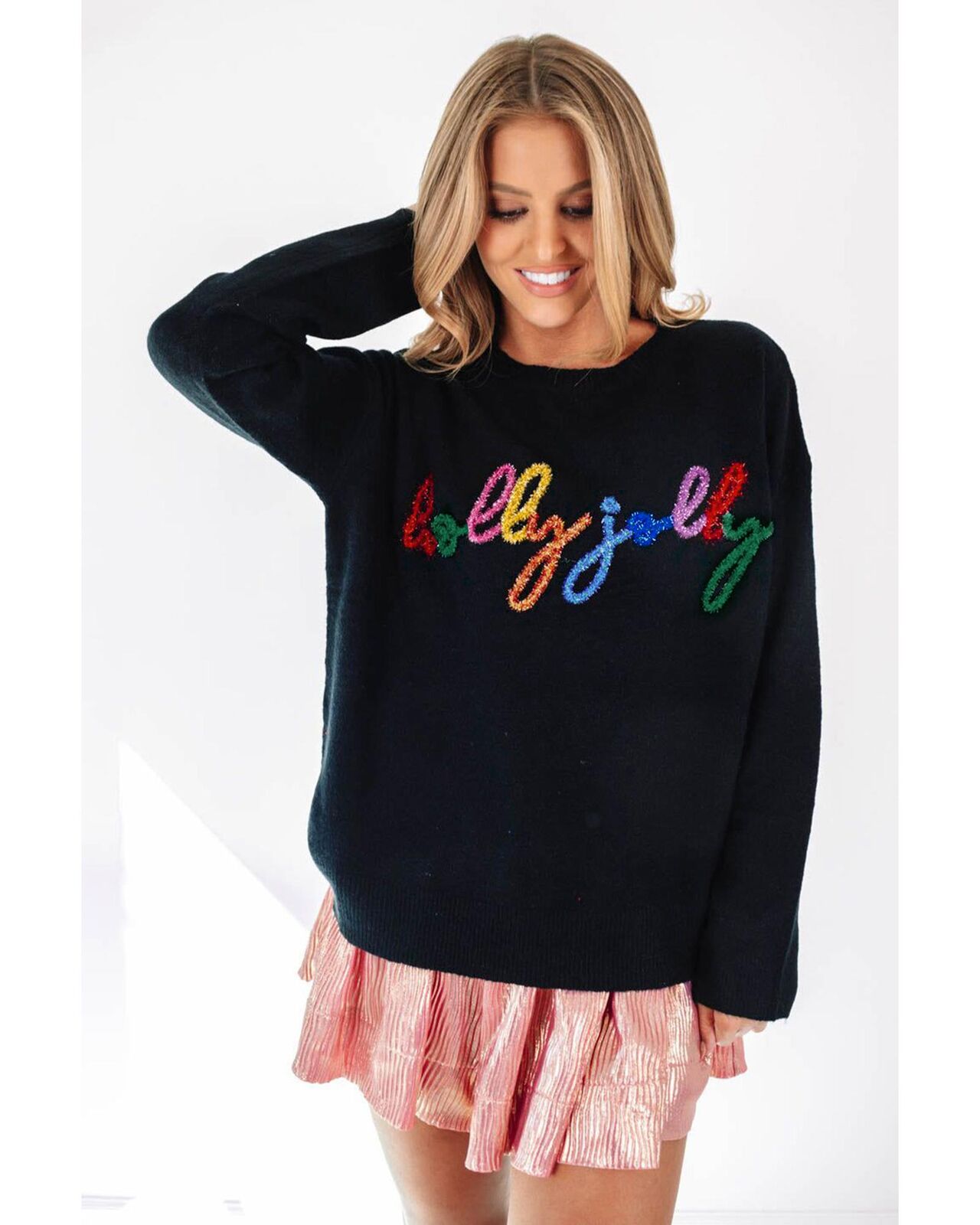 • Holly jolly letter embroidered by tinsels