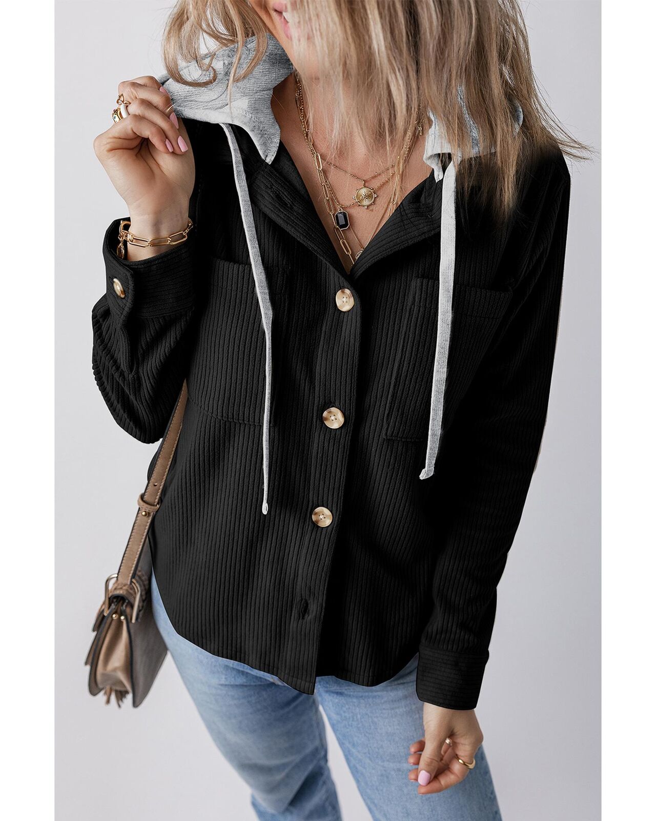 • Hooded design with drawstring details